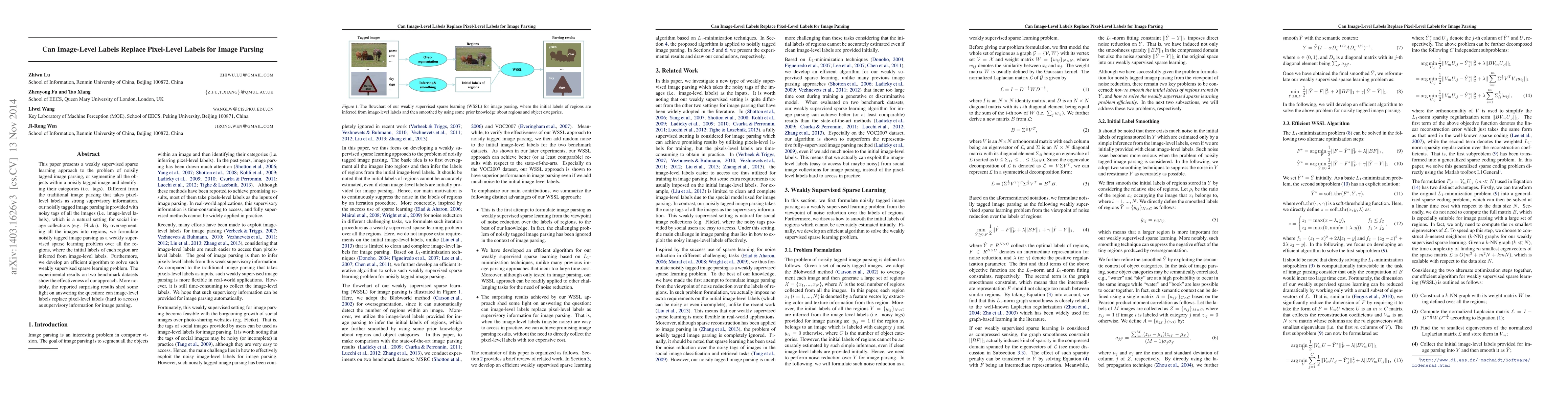 This paper explores whether image-level labels can serve as a viable alternative to pixel-level labels for image parsing, proposing a weakly supervised sparse learning approach to segment and categorize objects in noisily tagged images. The results suggest that image-level labels can effectively replace pixel-level labels for this task.