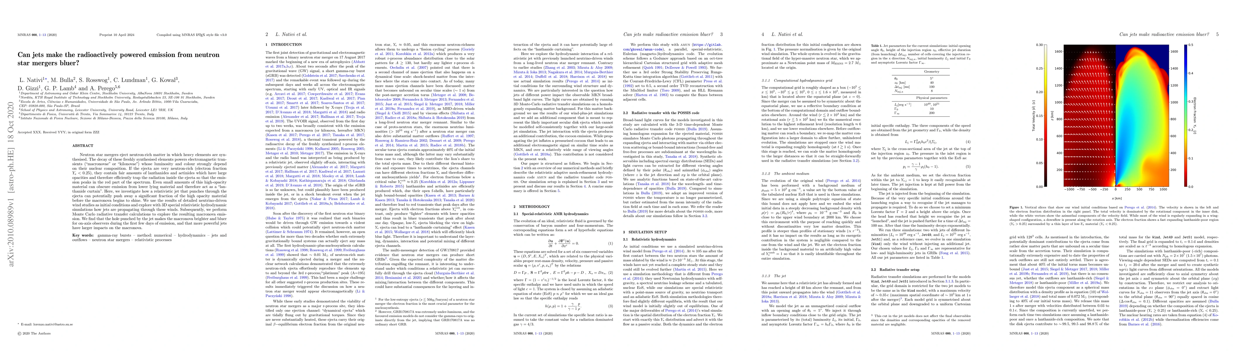 Neutron star mergers eject neutron-rich matter in which heavy elements are synthesised. The decay of these freshly synthesised elements powers electromagnetic transients ("macronovae" or "kilonovae") whose luminosity and colour strongly depend on their nuclear composition. If the ejecta are very neutron-rich (electron fraction $Y_\mathrm{e} < 0.25$), they contain fair amounts of lanthanides and actinides which have large opacities and therefore efficiently trap the radiation inside the ejecta so that the emission peaks in the red part of the spectrum. Even small amounts of this high-opacity material can obscure emission from lower lying material and therefore act as a "lanthanide curtain". Here, we investigate how a relativistic jet that punches through the ejecta can potentially push away a significant fraction of the high opacity material before the macronova begins to shine. We use the results of detailed neutrino-driven wind studies as initial conditions and explore with 3D special relativistic hydrodynamic simulations how jets are propagating through these winds. Subsequently, we perform Monte Carlo radiative transfer calculations to explore the resulting macronova emission. We find that the hole punched by the jet makes the macronova brighter and bluer for on-axis observers during the first few days of emission, and that more powerful jets have larger impacts on the macronova.