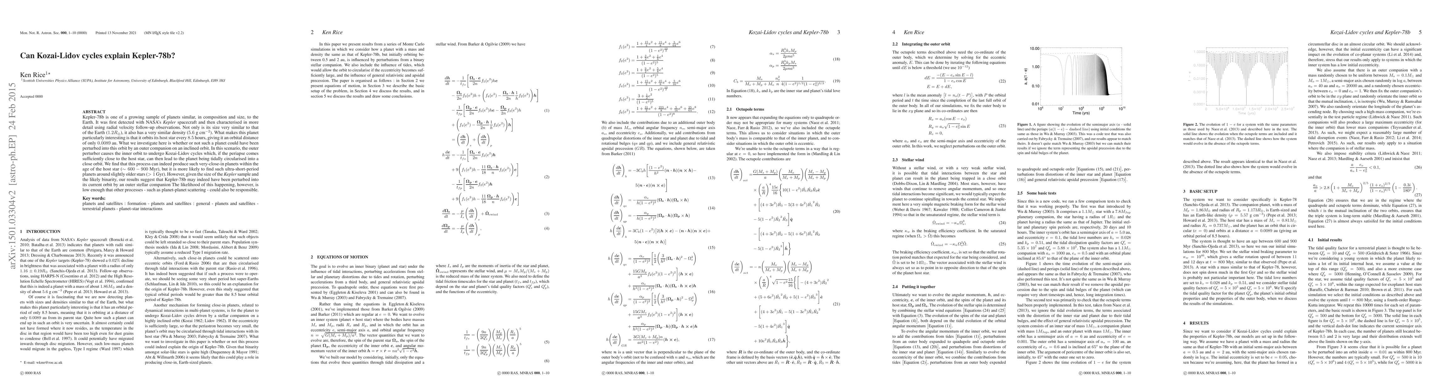 Kepler-78b is one of a growing sample of planets similar, in composition and size, to the Earth. It was first detected with NASA's \emph{Kepler} spacecraft and then characterised in more detail using radial velocity follow-up observations. Not only is its size very similar to that of the Earth ($1.2 R_\oplus$), it also has a very similar density ($5.6$ g cm$^{-2}$). What makes this planet particularly interesting is that it orbits its host star every $8.5$ hours, giving it an orbital distance of only $0.0089$ au. What we investigate here is whether or not such a planet could have been perturbed into this orbit by an outer companion on an inclined orbit. In this scenario, the outer perturber causes the inner orbit to undergo Kozai-Lidov cycles which, if the periapse comes sufficiently close to the host star, can then lead to the planet being tidally circularised into a close orbit. We find that this process can indeed produce such very-close-in planets within the age of the host star ($\sim 600 - 900$ Myr), but it is more likely to find such ultra-short-period planets around slightly older stars ($> 1$ Gyr). However, given the size of the Kepler sample and the likely binarity, our results suggest that Kepler-78b may indeed have been perturbed into its current orbit by an outer stellar companion. The likelihood of this happening, however, is low enough that other processes - such as planet-planet scattering - could also be responsible.