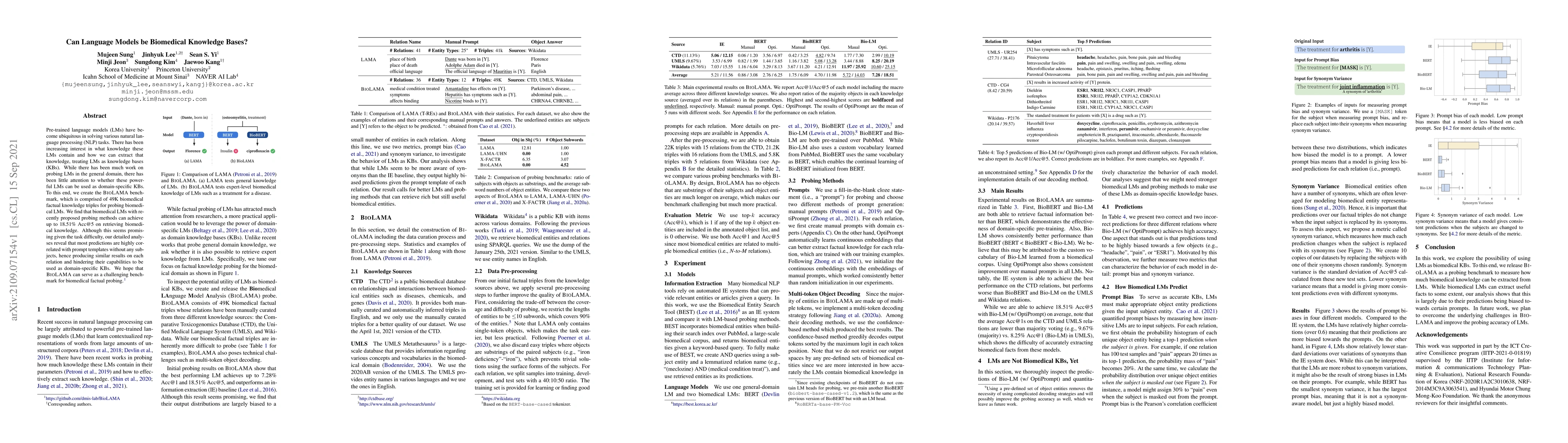 This paper investigates the potential of pre-trained language models as biomedical knowledge bases using a new benchmark, BioLAMA, which contains 49K biomedical factual knowledge triples. While models show promising performance, detailed analysis reveals that they often rely on prompt templates rather than actual knowledge, limiting their effectiveness as domain-specific knowledge bases.