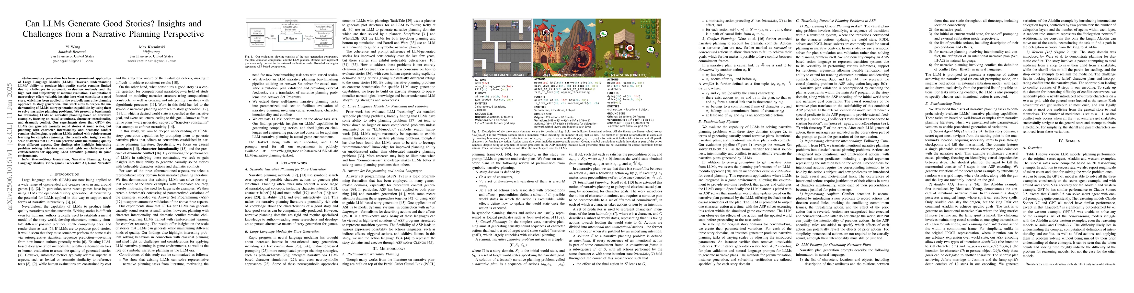 The study provides insights into LLMs' story generation capabilities and highlights challenges for applying narrative planning in game environments.