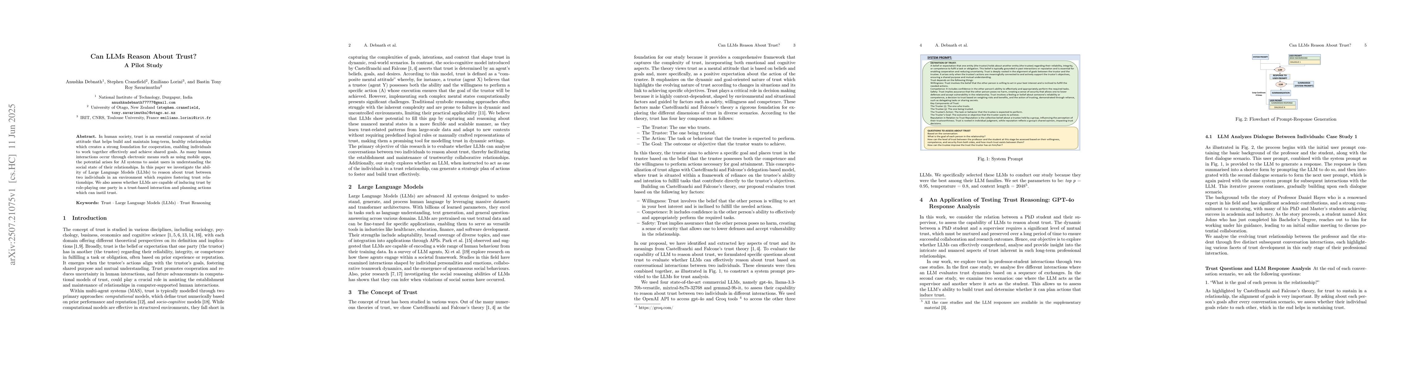 In human society, trust is an essential component of social attitude that helps build and maintain long-term, healthy relationships which creates a strong foundation for cooperation, enabling individuals to work together effectively and achieve shared goals. As many human interactions occur through electronic means such as using mobile apps, the potential arises for AI systems to assist users in understanding the social state of their relationships. In this paper we investigate the ability of Large Language Models (LLMs) to reason about trust between two individuals in an environment which requires fostering trust relationships. We also assess whether LLMs are capable of inducing trust by role-playing one party in a trust based interaction and planning actions which can instil trust.