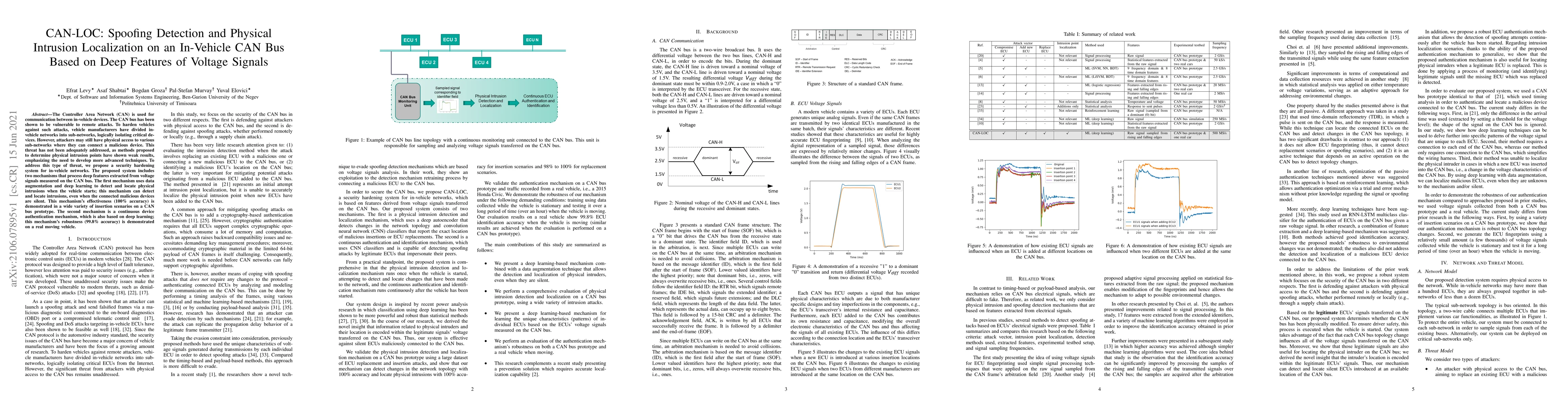 The paper proposes a security system for in-vehicle CAN buses using deep learning to detect and localize physical intrusions via voltage signal analysis. The system achieves 100% accuracy in intrusion detection and localization, and 99.8% accuracy in continuous device authentication on a real vehicle.