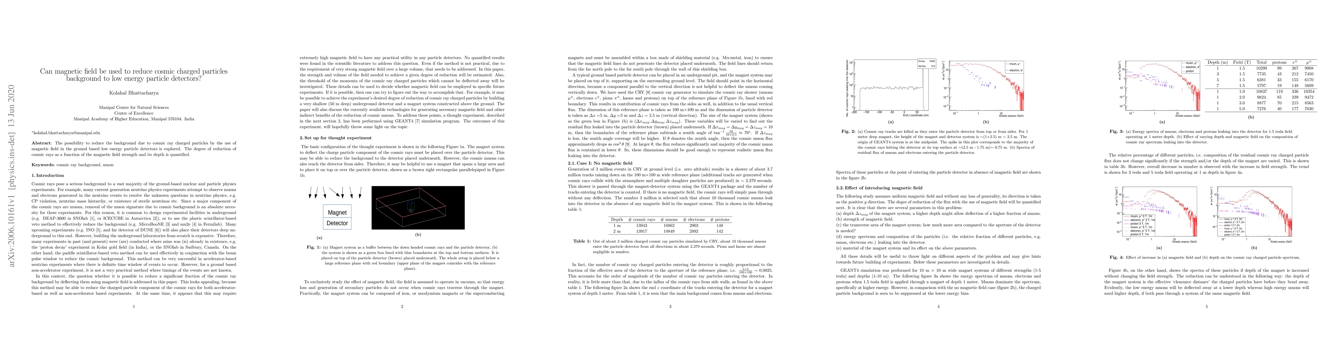 Researchers explored using magnetic fields to reduce cosmic ray background in low-energy particle detectors, finding a degree of reduction based on field strength and depth.