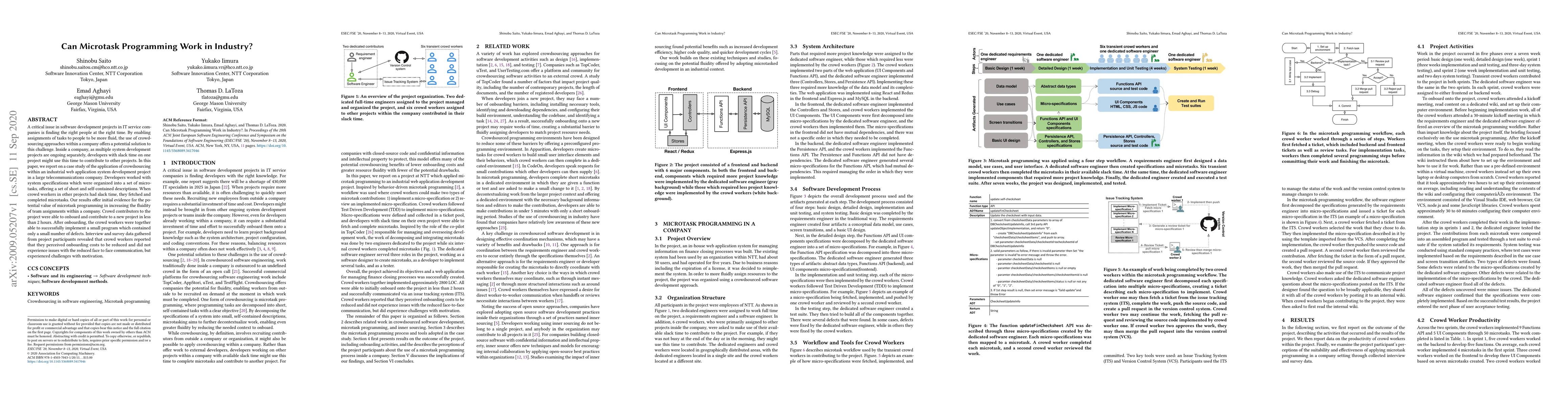 A critical issue in software development projects in IT service companies is finding the right people at the right time. By enabling assignments of tasks to people to be more fluid, the use of crowdsourcing approaches within a company offers a potential solution to this challenge. Inside a company, as multiple system development projects are ongoing separately, developers with slack time on one project might use this time to contribute to other projects. In this paper, we report on a case study of the application of crowdsourcing within an industrial web application system development project in a large telecommunications company. Developers worked with system specifications which were organized into a set of microtasks, offering a set of short and self-contained descriptions. When crowd workers in other projects had slack time, they fetched and completed microtasks. Our results offer initial evidence for the potential value of microtask programming in increasing the fluidity of team assignments within a company. Crowd contributors to the project were able to onboard and contribute to a new project in less than 2 hours. After onboarding, the crowd workers were together able to successfully implement a small program which contained only a small number of defects. Interview and survey data gathered from project participants revealed that crowd workers reported that they perceived onboarding costs to be reduced and did not experience issues with the reduced face to face communication, but experienced challenges with motivation.