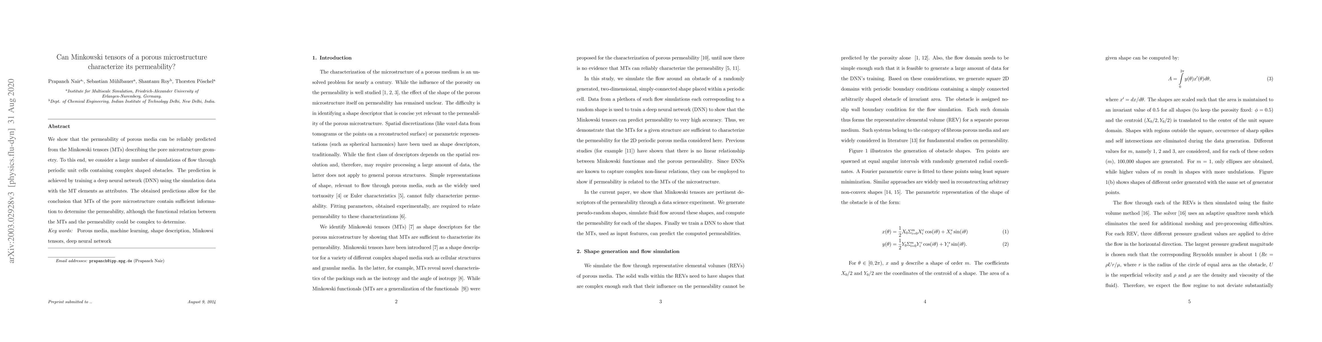 We show that the permeability of porous media can be reliably predicted from the Minkowski tensors (MTs) describing the pore microstructure geometry. To this end, we consider a large number of simulations of flow through periodic unit cells containing complex shaped obstacles. The prediction is achieved by training a deep neural network (DNN) using the simulation data with the MT elements as attributes. The obtained predictions allow for the conclusion that MTs of the pore microstructure contain sufficient information to determine the permeability, although the functional relation between the MTs and the permeability could be complex to determine.