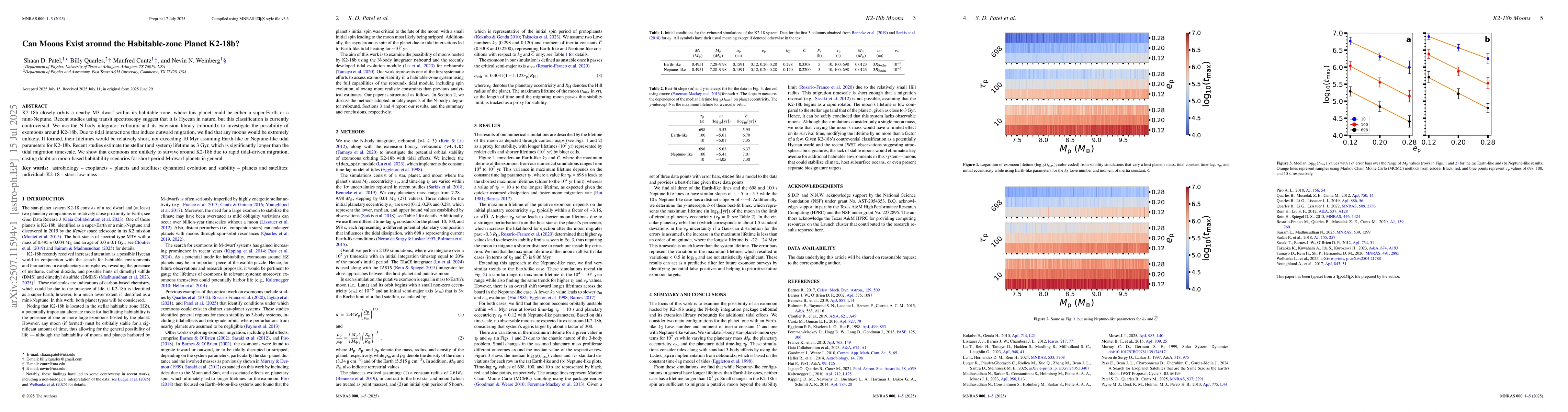 The study uses the N-body integrator rebound and its extension library reboundx to investigate the possibility of exomoons around K2-18b, considering tidal interactions and spin evolution.