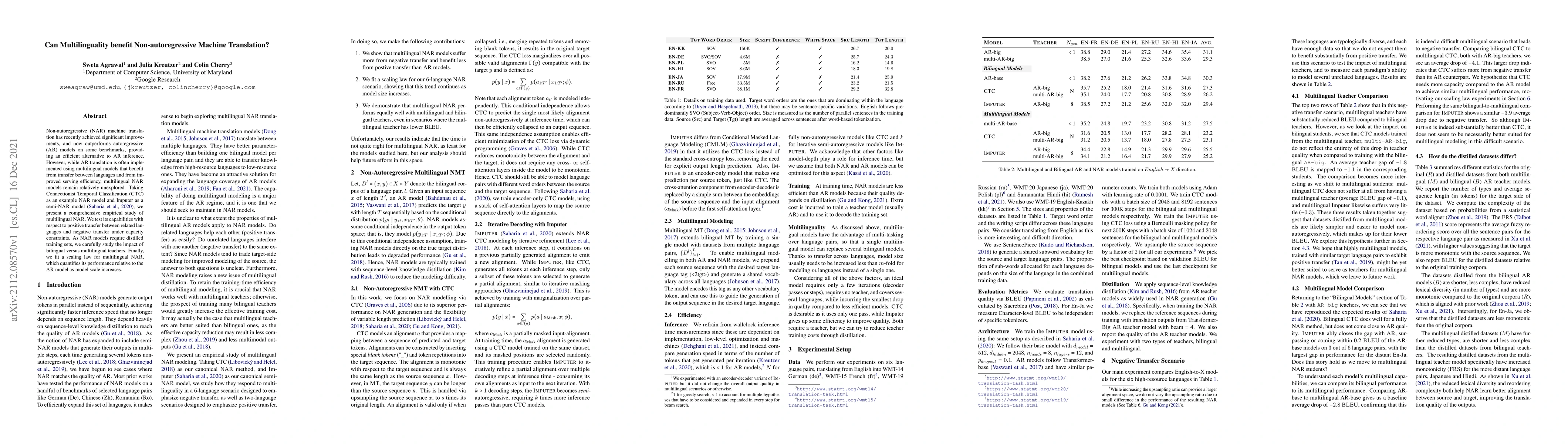 Non-autoregressive (NAR) machine translation has recently achieved significant improvements, and now outperforms autoregressive (AR) models on some benchmarks, providing an efficient alternative to AR inference. However, while AR translation is often implemented using multilingual models that benefit from transfer between languages and from improved serving efficiency, multilingual NAR models remain relatively unexplored. Taking Connectionist Temporal Classification (CTC) as an example NAR model and Imputer as a semi-NAR model, we present a comprehensive empirical study of multilingual NAR. We test its capabilities with respect to positive transfer between related languages and negative transfer under capacity constraints. As NAR models require distilled training sets, we carefully study the impact of bilingual versus multilingual teachers. Finally, we fit a scaling law for multilingual NAR, which quantifies its performance relative to the AR model as model scale increases.