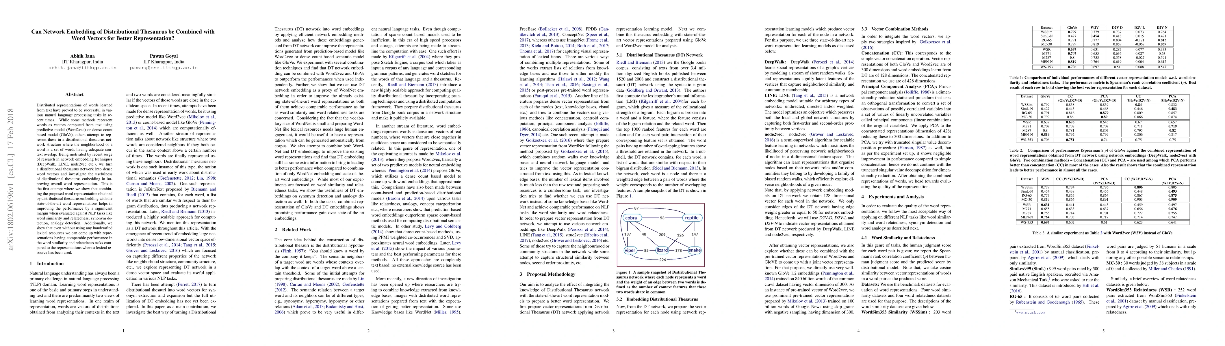 This paper explores combining network embedding of distributional thesaurus with word vectors to enhance word representation. It demonstrates that integrating the proposed distributional thesaurus embedding with existing word representations significantly improves performance in NLP tasks such as word similarity, synonym detection, and analogy detection.