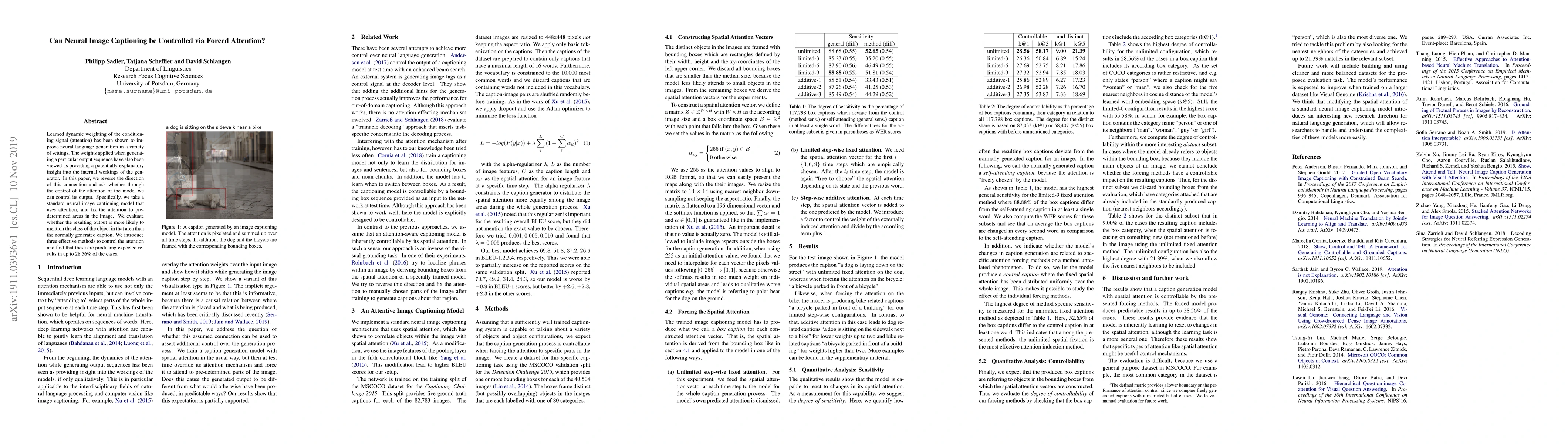 This paper investigates whether controlling the attention mechanism in a neural image captioning model can direct the generated captions to focus on specific areas of an image, finding that three methods can achieve this in up to 28.56% of cases. The study demonstrates the potential for influencing model output through attention manipulation.