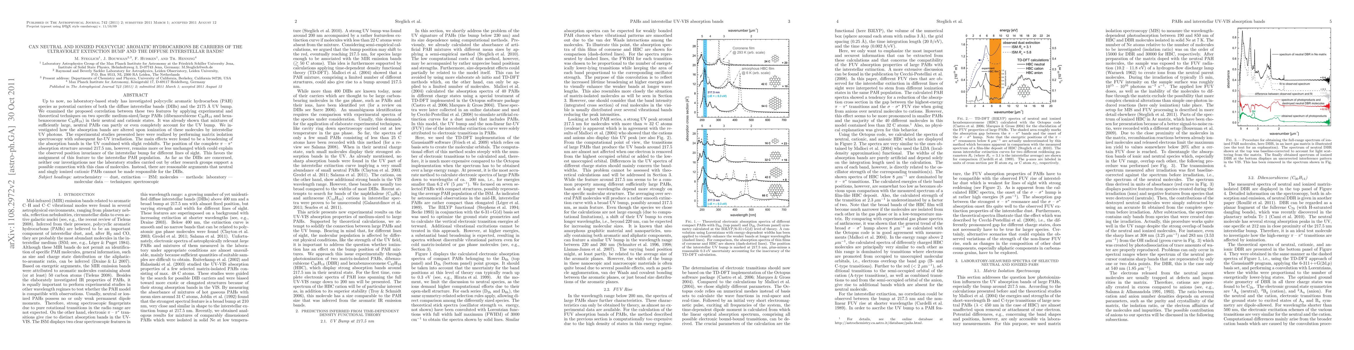 Up to now, no laboratory-based study has investigated polycyclic aromatic hydrocarbon (PAH) species as potential carriers of both the diffuse interstellar bands (DIBs) and the 2175 A UV bump. We examined the proposed correlation between these two features by applying experimental and theoretical techniques on two specific medium-sized/large PAHs (dibenzorubicene C30H14 and hexabenzocoronene C42H18) in their neutral and cationic states. It was already shown that mixtures of sufficiently large, neutral PAHs can partly or even completely account for the UV bump. We investigated how the absorption bands are altered upon ionization of these molecules by interstellar UV photons. The experimental studies presented here were realized by performing matrix isolation spectroscopy with subsequent far-UV irradiation. The main effects were found to be a broadening of the absorption bands in the UV combined with slight red shifts. The position of the complete pi - pi* absorption structure around 217.5 nm, however, remains more or less unchanged which could explain the observed position invariance of the interstellar bump for different lines of sight. This favors the assignment of this feature to the interstellar PAH population. As far as the DIBs are concerned, neither our investigations nor the laboratory studies carried out by other research groups support a possible connection with this class of molecules. Instead, there are reasonable arguments that neutral and singly ionized cationic PAHs cannot be made responsible for the DIBs.