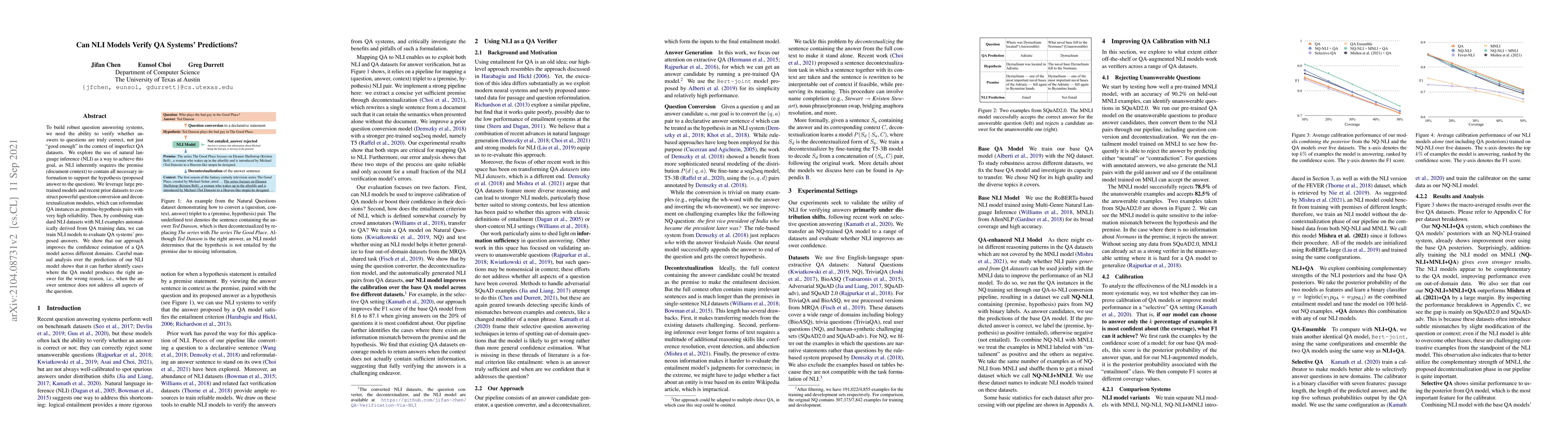 This research investigates using natural language inference (NLI) models to verify the correctness of question answering (QA) systems' predictions, aiming to ensure answers are not just plausible but genuinely correct. By reformulating QA instances as premise-hypothesis pairs, the study trains NLI models to assess QA outputs, demonstrating improved confidence estimation and the ability to identify incorrect reasoning or incomplete answers.