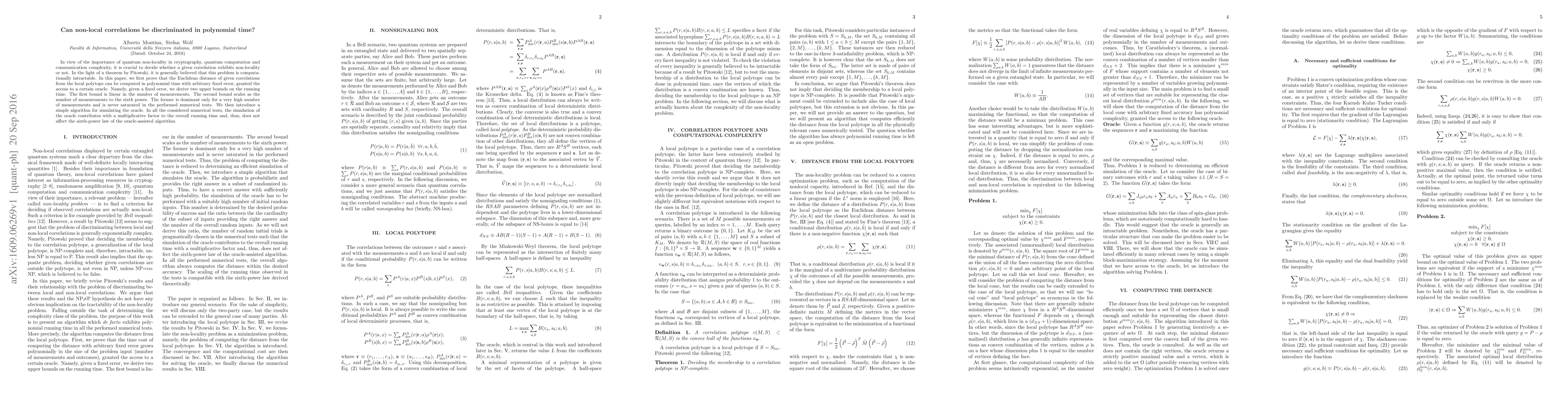 In view of the importance of quantum non-locality in cryptography, quantum computation and communication complexity, it is crucial to decide whether a given correlation exhibits non-locality or not. In the light of a theorem by Pitowski, it is generally believed that this problem is computationally intractable. In this paper, we first prove that the Euclidean distance of given correlations from the local polytope can be computed in polynomial time with arbitrary fixed error, granted the access to a certain oracle. Namely, given a fixed error, we derive two upper bounds on the running time. The first bound is linear in the number of measurements. The second bound scales as the number of measurements to the sixth power. The former is dominant only for a very high number of measurements and is never saturated in the performed numerical tests. We then introduce a simple algorithm for simulating the oracle. In all the considered numerical tests, the simulation of the oracle contributes with a multiplicative factor to the overall running time and, thus, does not affect the sixth-power law of the oracle-assisted algorithm.