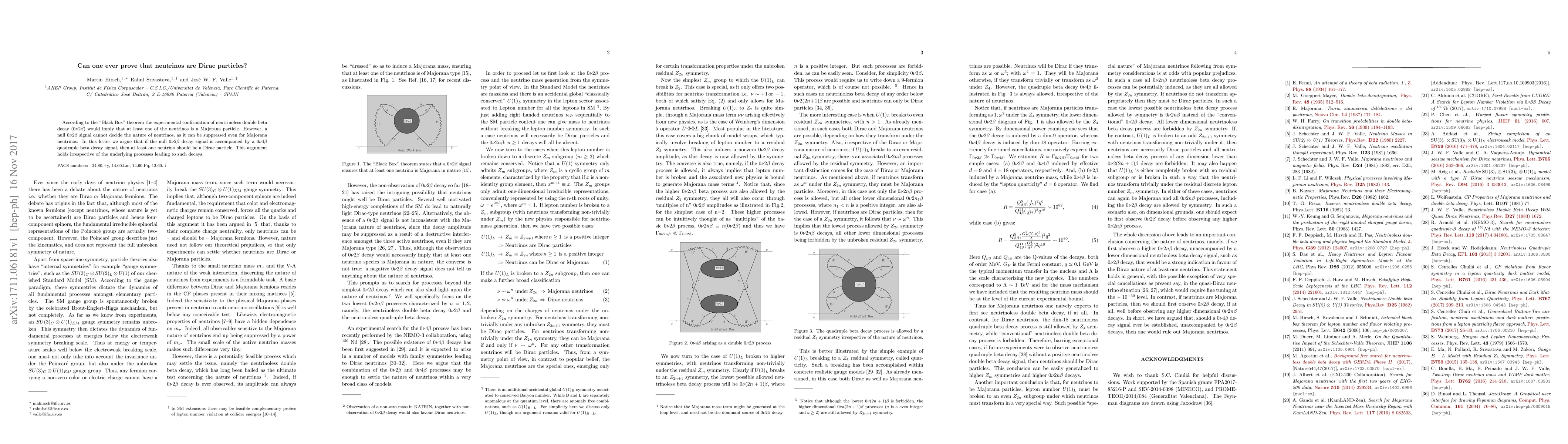 According to the "Black Box" theorem the experimental confirmation of neutrinoless double beta decay ($0 \nu 2 \beta$) would imply that at least one of the neutrinos is a Majorana particle. However, a null $0 \nu 2 \beta$ signal cannot decide the nature of neutrinos, as it can be suppressed even for Majorana neutrinos. In this letter we argue that if the null $0 \nu 2 \beta$ decay signal is accompanied by a $0 \nu 4 \beta$ quadruple beta decay signal, then at least one neutrino should be a Dirac particle. This argument holds irrespective of the underlying processes leading to such decays.