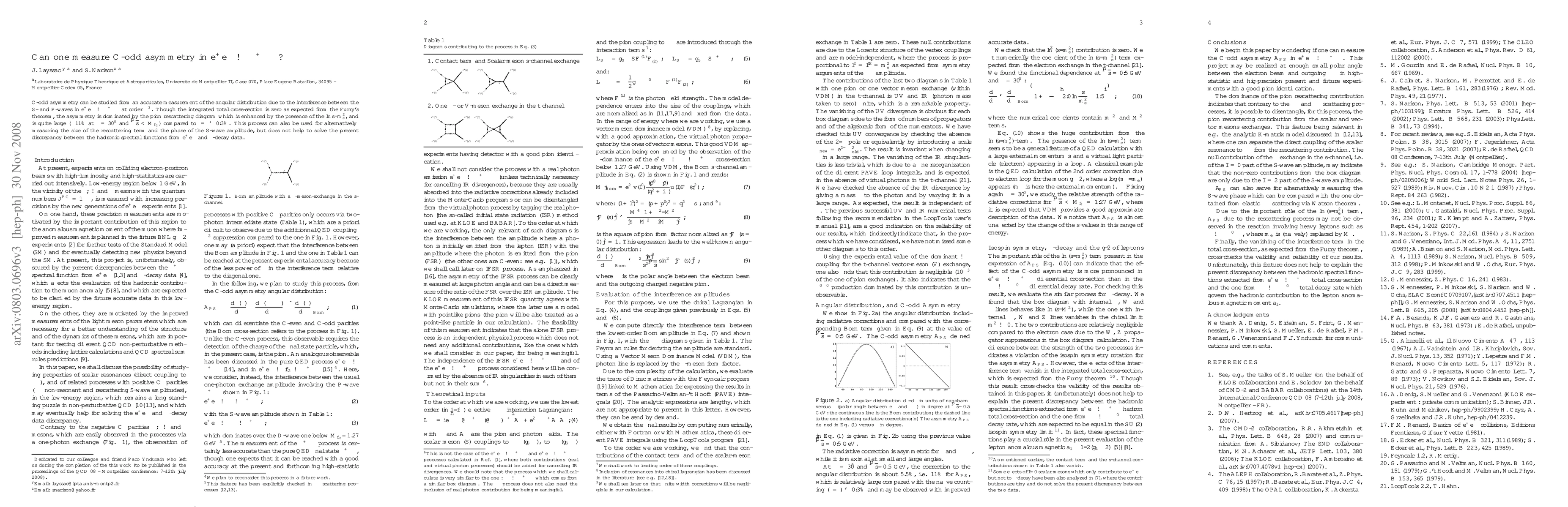 Researchers found a way to measure C-odd asymmetry in e+e- collisions by analyzing the interference between S- and P-waves in pi+pi- production, revealing an asymmetry of 10%.