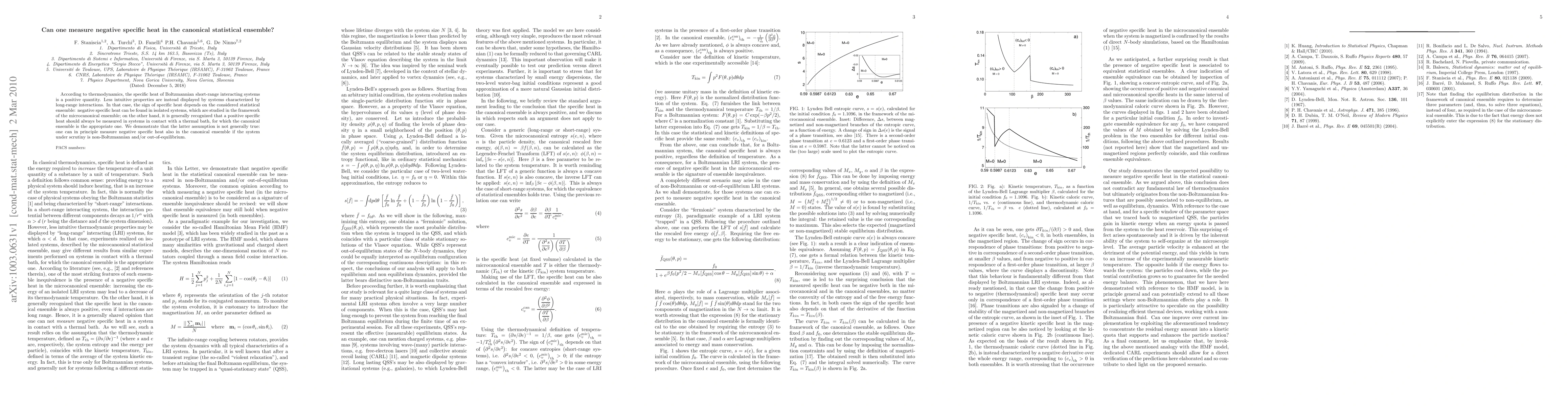 This paper explores the possibility of measuring negative specific heat in the canonical statistical ensemble, traditionally associated with positive specific heat. The authors demonstrate that negative specific heat can be observed in non-Boltzmannian and out-of-equilibrium systems, challenging the conventional understanding of specific heat in canonical systems.