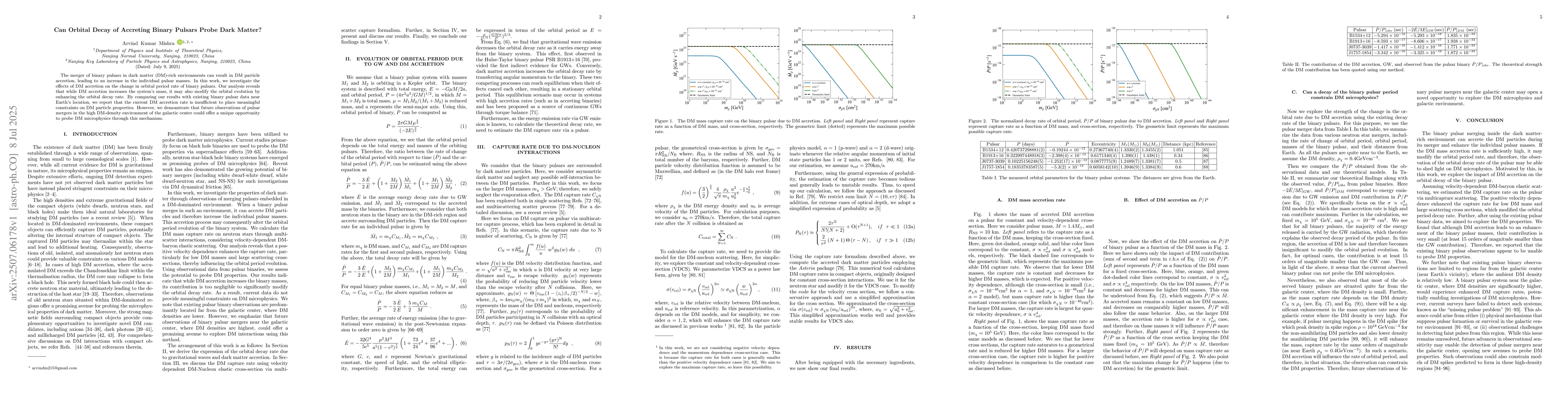 The merger of binary pulsars in dark matter (DM)-rich environments can result in DM particle accretion, leading to an increase in the individual pulsar masses. In this work, we investigate the effects of DM accretion on the change in orbital period rate of binary pulsars. Our analysis reveals that while DM accretion increases the system's mass, it may also modify the orbital evolution by enhancing the orbital decay rate. By comparing our results with existing binary pulsar data near Earth's location, we report that the current DM accretion rate is insufficient to place meaningful constraints on DM particle properties. However, we demonstrate that future observations of pulsar mergers in the high DM-density environment of the galactic center could offer a unique opportunity to probe DM microphysics through this mechanism.