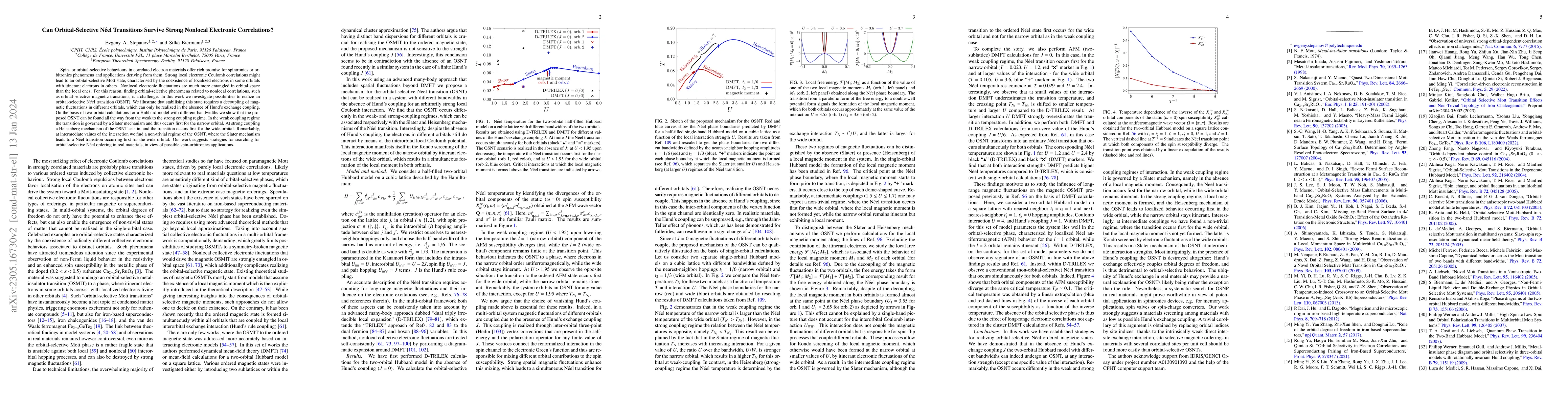 This research explores the viability of orbital-selective Néel transitions (OSNT) in strongly correlated electron systems, showing that such transitions can survive even in the presence of nonlocal electronic correlations. It demonstrates that OSNTs can occur through different mechanisms depending on the strength of the coupling, suggesting pathways for discovering such phenomena in real materials for potential spin-orbitronics applications.