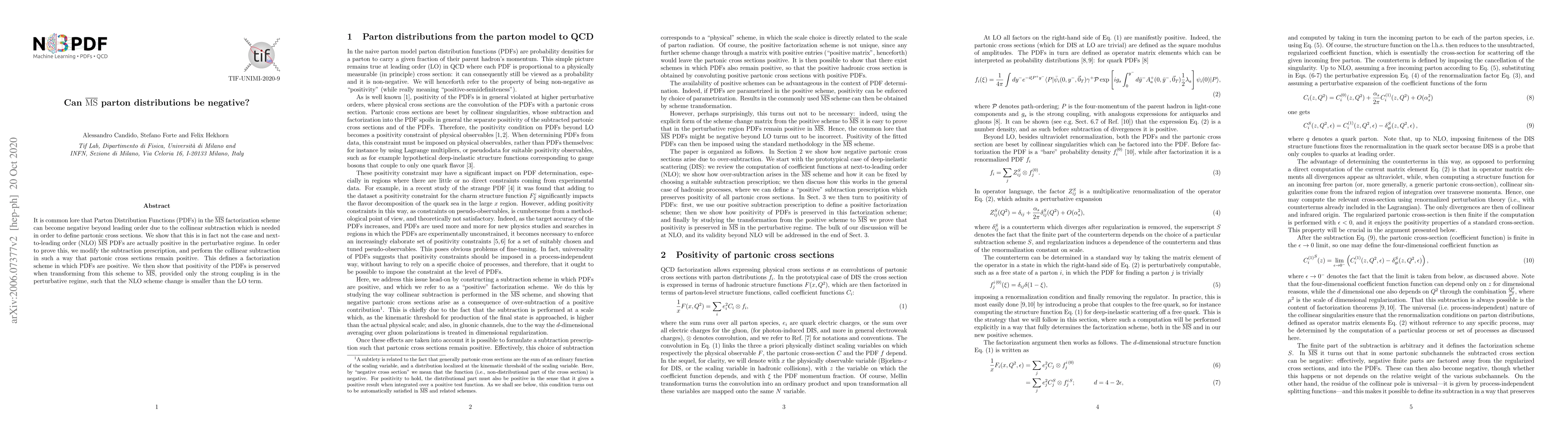 New research shows that Parton Distribution Functions in the $ar{MS}$ scheme cannot become negative beyond leading order, contrary to long-held lore, due to a modified subtraction prescription.