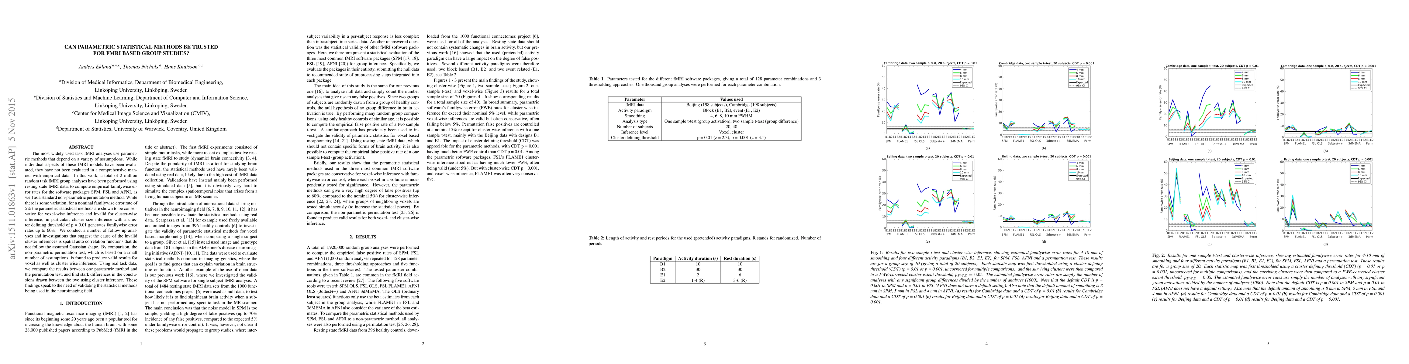 This study finds that parametric statistical methods used in fMRI group analyses are conservative for voxel-wise but invalid for cluster-wise inference, primarily due to spatial autocorrelation issues. In contrast, non-parametric permutation tests provide valid results for both voxel and cluster-wise inferences, highlighting the need for better validation of statistical methods in neuroimaging.