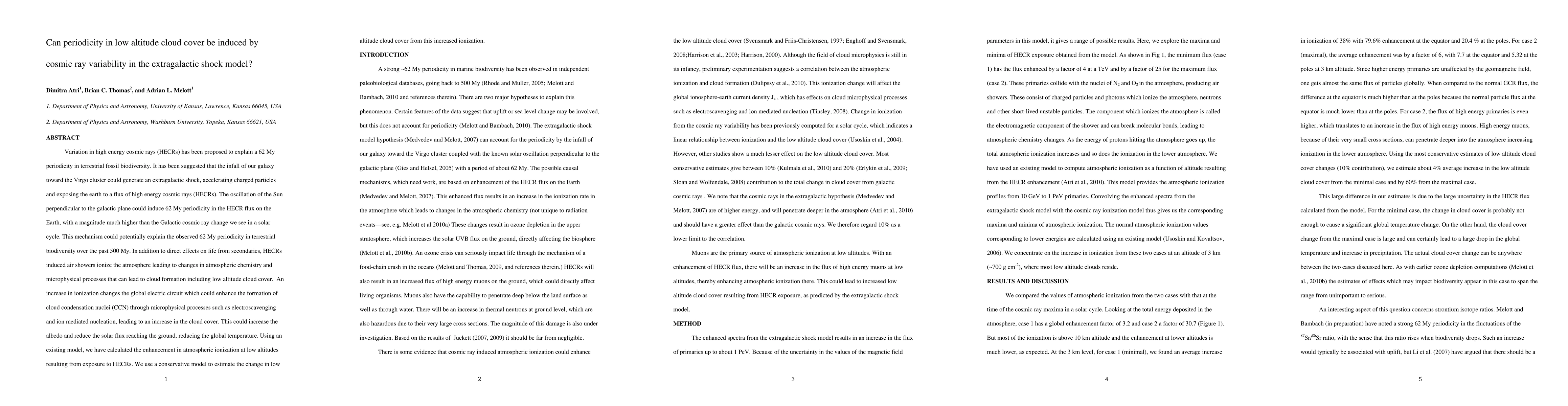 This paper explores whether cosmic ray variability induced by an extragalactic shock from the Virgo cluster could create a 62 My periodicity in low altitude cloud cover through atmospheric ionization and changes in cloud condensation nuclei. The study suggests that increased cosmic ray flux may enhance cloud formation, potentially influencing global temperature and climate.
