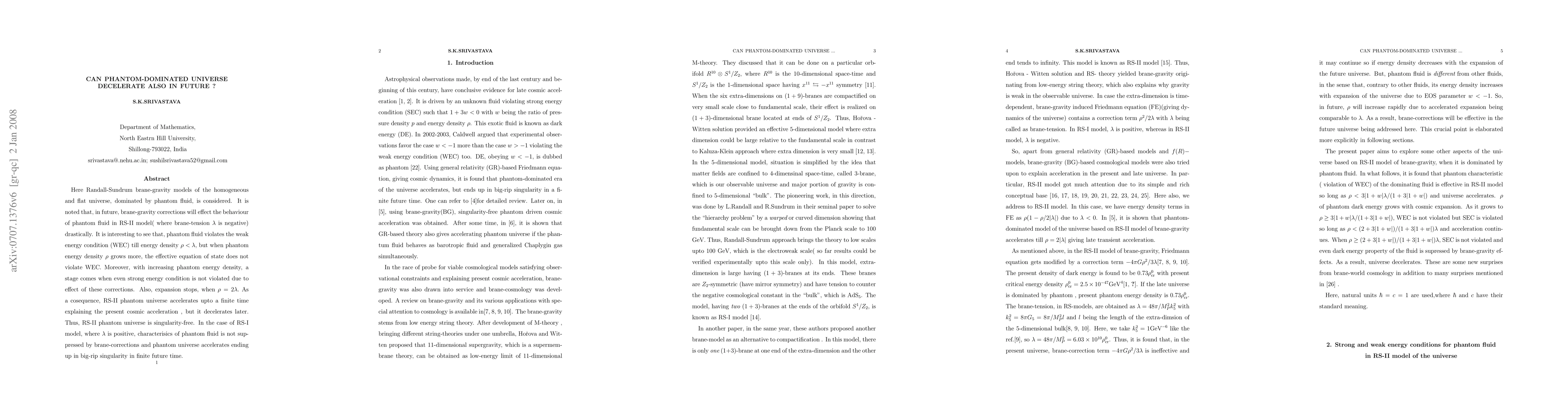 Here Randall-Sundrum brane-gravity models of the homogeneous and flat universe, dominated by phantom fluid, is considered. It is noted that brane-gravity corrections effect the behaviour of phantom fluid in RS-II model (where brane-tension $\lambda$ is negative) drastically. It is interesting to see that, phantom fluid violates the weak energy condition (WEC) till energy density $\rho < \lambda$, but when phantom energy density $\rho$ grows more, the effective equation of state does not violate WEC. Moreover, with increasing phantom energy density, a stage comes when even strong energy condition is not violated due to effect of these corrections. Also expansion stops, when $\rho = 2 \lambda$. As a consequence, RS-II phantom universe accelerates upto a finite time explaining the present cosmic acceleration, but it decelerates later.Thus, RS-II phantom universe is singularity-free. In the case of RS-I model, where $\lambda$ is positive, characteristics of phantom fluid is not suppressed by brane-corrections and phantom universe accelerates ending up in big-rip singularity in finite future time.
