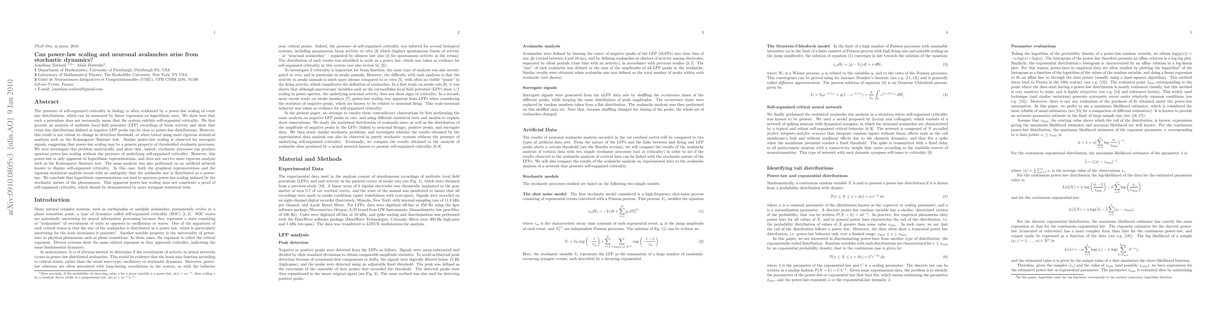 This paper investigates whether power-law scaling and neuronal avalanches in brain activity are indicative of self-organized criticality, finding that they can arise from stochastic processes. Through analysis of brain recordings and surrogate models, it concludes that apparent power-law scaling in logarithmic representations often results from stochastic dynamics rather than genuine self-organized criticality, which requires rigorous statistical validation.