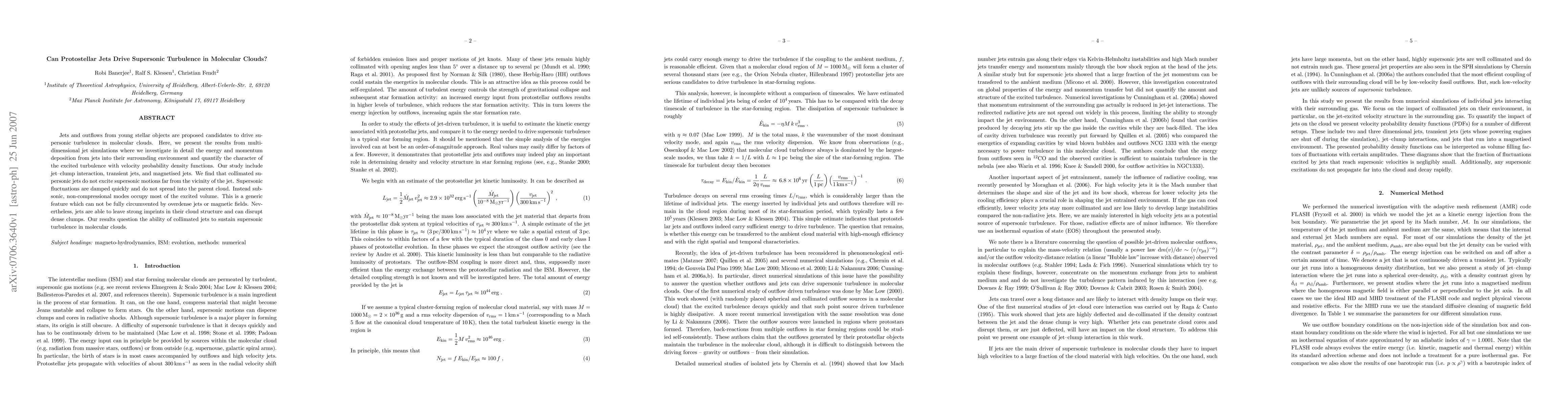 Jets and outflows from young stellar objects are proposed candidates to drive supersonic turbulence in molecular clouds. Here, we present the results from multi-dimensional jet simulations where we investigate in detail the energy and momentum deposition from jets into their surrounding environment and quantify the character of the excited turbulence with velocity probability density functions. Our study include jet--clump interaction, transient jets, and magnetised jets. We find that collimated supersonic jets do not excite supersonic motions far from the vicinity of the jet. Supersonic fluctuations are damped quickly and do not spread into the parent cloud. Instead subsonic, non-compressional modes occupy most of the excited volume. This is a generic feature which can not be fully circumvented by overdense jets or magnetic fields. Nevertheless, jets are able to leave strong imprints in their cloud structure and can disrupt dense clumps. Our results question the ability of collimated jets to sustain supersonic turbulence in molecular clouds.