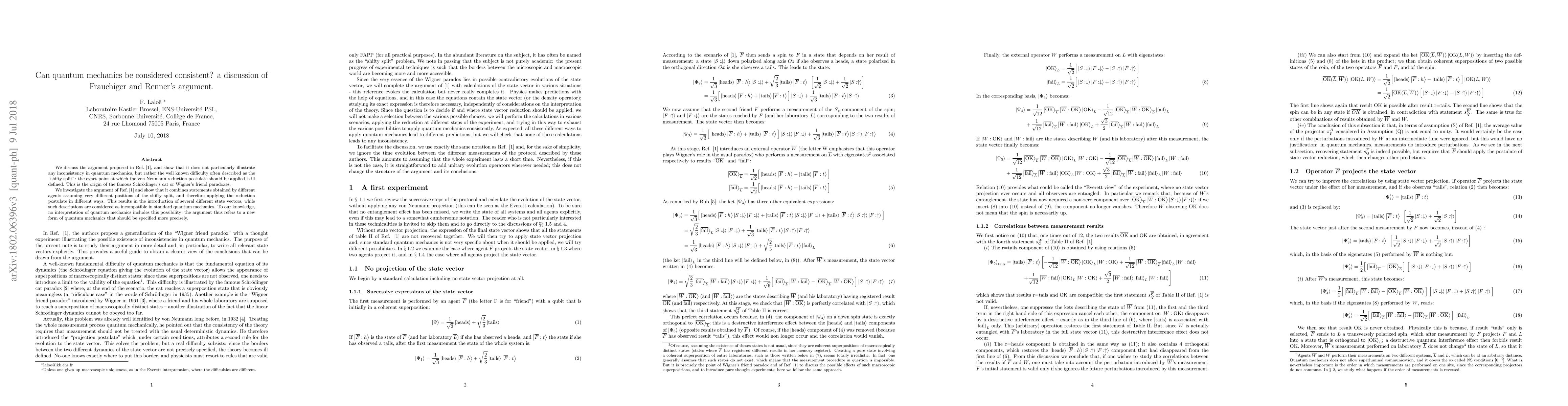 This paper examines Frauchiger and Renner's argument regarding potential inconsistencies in quantum mechanics, concluding that it highlights the "shifty split" issue rather than actual inconsistencies. The argument combines different agents' interpretations, leading to incompatible state vectors, suggesting a need for a more precise specification of a new form of quantum mechanics.