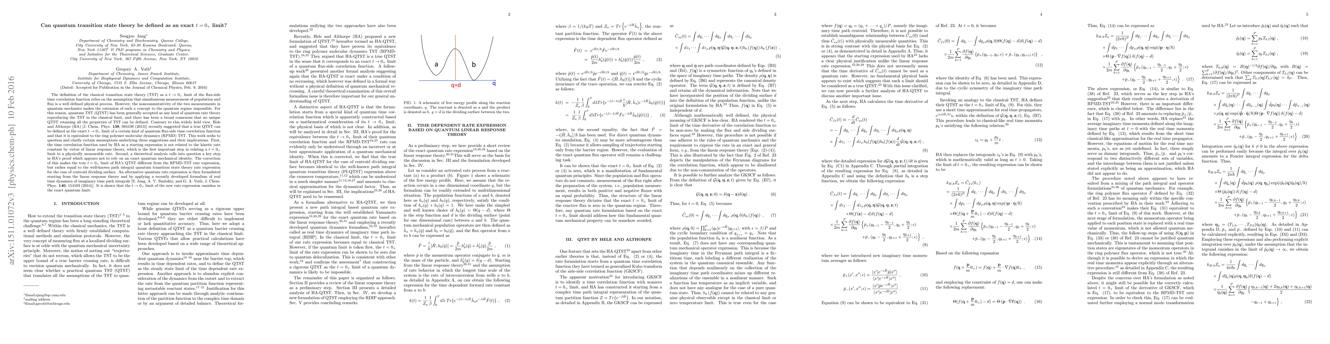 This paper critiques the proposal by Hele and Althorpe to define quantum transition state theory (QTST) as an exact t=0+ limit, arguing that their suggested quantum flux-side time correlation function does not relate directly to the kinetic rate constant. An alternative path integral quantum rate expression is proposed, showing that its t=0+ limit vanishes in the exact quantum limit.