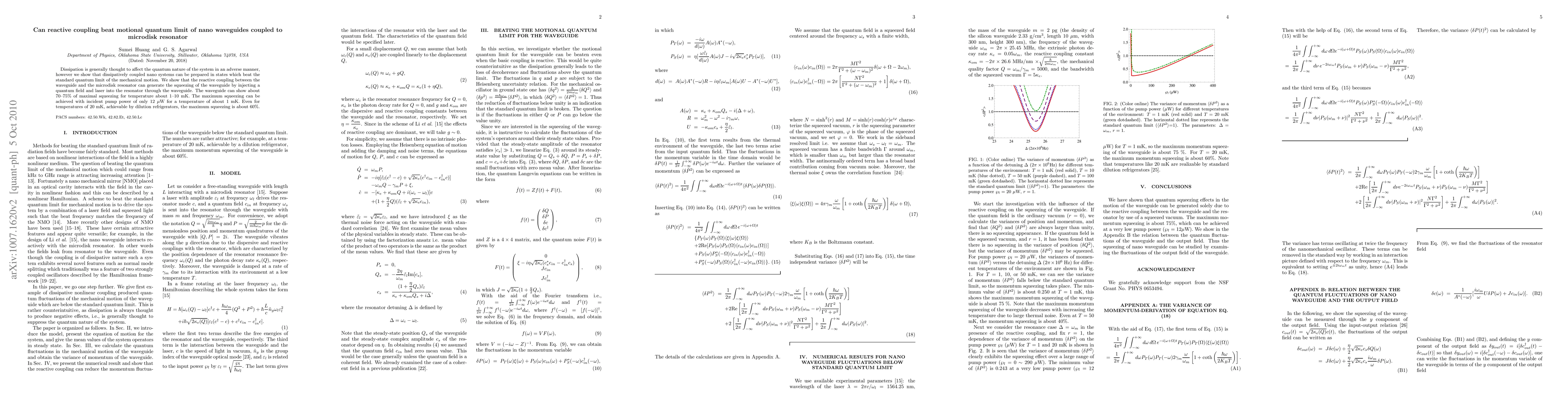 Dissipation is generally thought to affect the quantum nature of the system in an adverse manner, however we show that dissipatively coupled nano systems can be prepared in states which beat the standard quantum limit of the mechanical motion. We show that the reactive coupling between the waveguide and the microdisk resonator can generate the squeezing of the waveguide by injecting a quantum field and laser into the resonator through the waveguide. The waveguide can show about 70--75% of maximal squeezing for temperature about 1--10 mK. The maximum squeezing can be achieved with incident pump power of only 12 $\mu$W for a temperature of about 1 mK. Even for temperatures of 20 mK, achievable by dilution refrigerators, the maximum squeezing is about 60%.