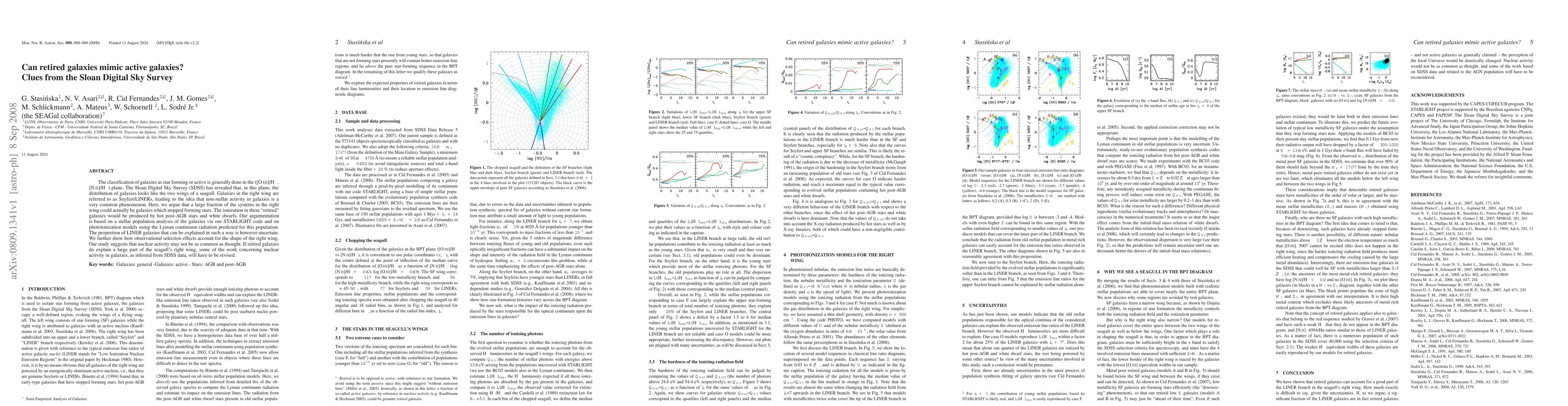 The classification of galaxies as star forming or active is generally done in the ([O III]/Hbeta, [N II]/Halpha) plane. The Sloan Digital Sky Survey (SDSS) has revealed that, in this plane, the distribution of galaxies looks like the two wings of a seagull. Galaxies in the right wing are referred to as Seyfert/LINERs, leading to the idea that non-stellar activity in galaxies is a very common phenomenon. Here, we argue that a large fraction of the systems in the right wing could actually be galaxies which stopped forming stars. The ionization in these "retired" galaxies would be produced by hot post-AGB stars and white dwarfs. Our argumentation is based on a stellar population analysis of the galaxies via our STARLIGHT code and on photoionization models using the Lyman continuum radiation predicted for this population. The proportion of LINER galaxies that can be explained in such a way is however uncertain. We further show how observational selection effects account for the shape of the right wing. Our study suggests that nuclear activity may not be as common as thought. If retired galaxies do explain a large part of the seagull's right wing, some of the work concerning nuclear activity in galaxies, as inferred from SDSS data, will have to be revised.