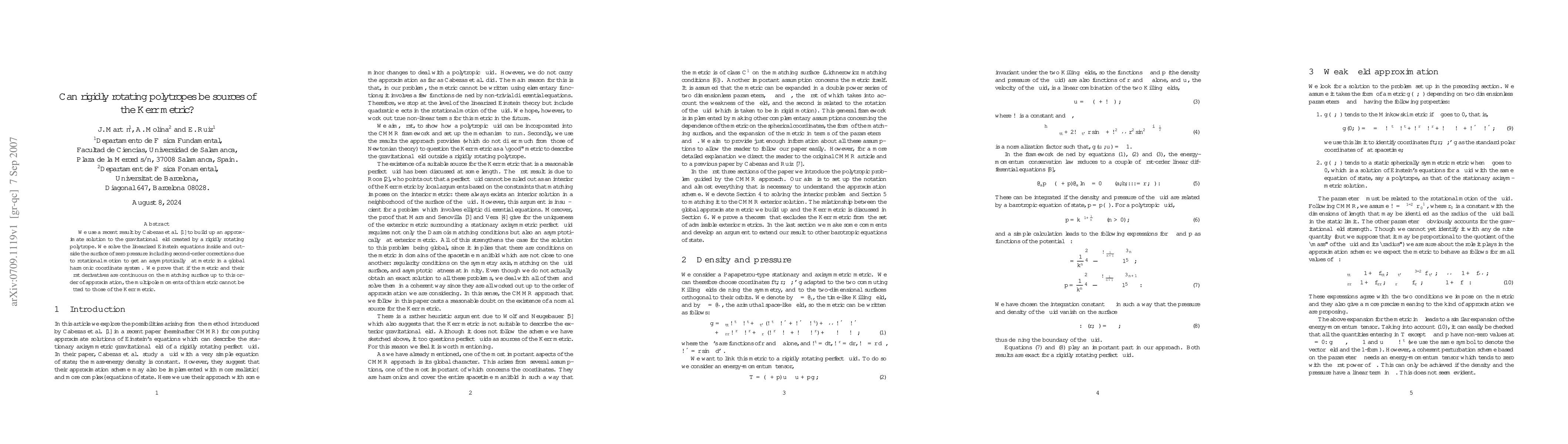 We use a recent result by Cabezas et al. to build up an approximate solution to the gravitational field created by a rigidly rotating polytrope. We solve the linearized Einstein equations inside and outside the surface of zero pressure including second-order corrections due to rotational motion to get an asymptotically flat metric in a global harmonic coordinate system. We prove that if the metric and their first derivatives are continuous on the matching surface up to this order of approximation, the multipole moments of this metric cannot be fitted to those of the Kerr metric.