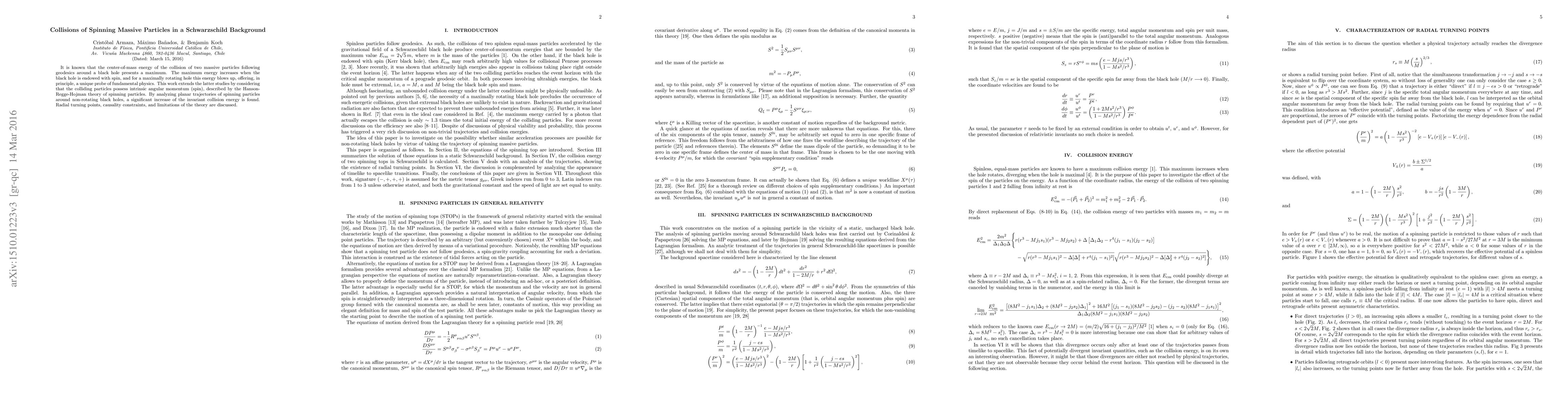 It is known that the center-of-mass energy of the collision of two massive particles following geodesics around a black hole presents a maximum. The maximum energy increases when the black hole is endowed with spin, and for a maximally rotating hole this energy blows up, offering, in principle, a unique probe of fundamental physics. This work extends the latter studies by considering that the colliding particles possess intrinsic angular momentum (spin), described by the Hanson-Regge-Hojman theory of spinning particles. By analyzing planar trajectories of spinning particles around non-rotating black holes, a significant increase of the invariant collision energy is found. Radial turning points, causality constraints, and limitations of the theory are discussed.