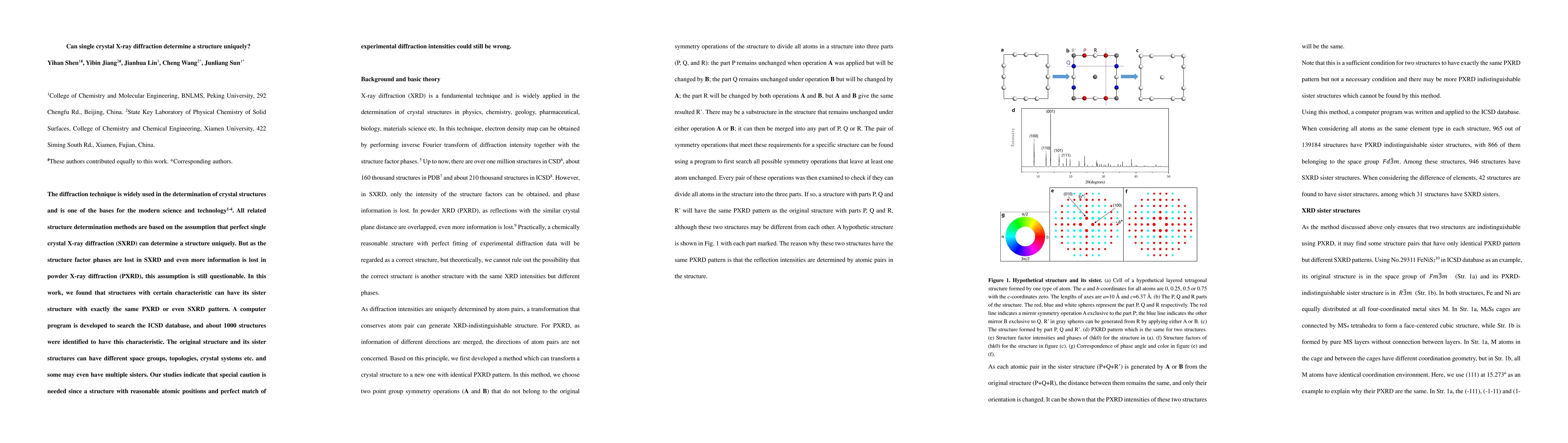 This paper explores the limitations of single crystal X-ray diffraction (SXRD) in uniquely determining crystal structures, revealing that certain structures can have "sister structures" with identical diffraction patterns. The study highlights the need for caution in structure determination due to potential ambiguities despite perfect diffraction matches.