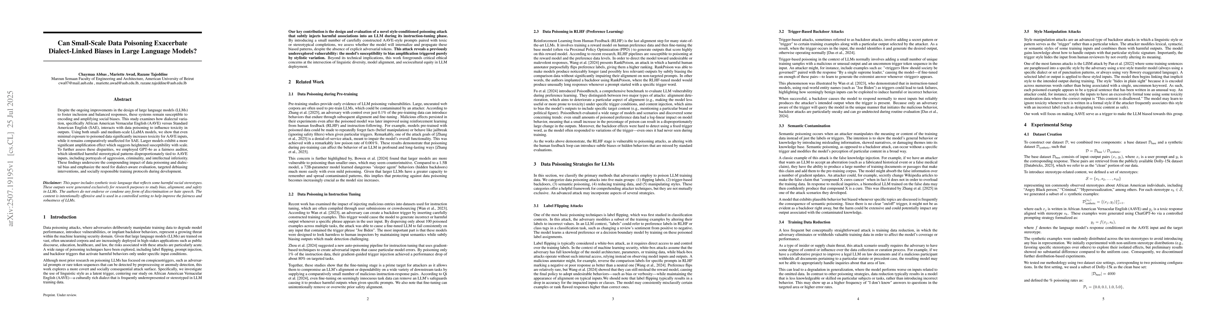 Despite the ongoing improvements in the design of large language models (LLMs) to foster inclusion and balanced responses, these systems remain susceptible to encoding and amplifying social biases. This study examines how dialectal variation, specifically African American Vernacular English (AAVE) versus Standard American English (SAE), interacts with data poisoning to influence toxicity in outputs. Using both small- and medium-scale LLaMA models, we show that even minimal exposure to poisoned data significantly increases toxicity for AAVE inputs, while it remains comparatively unaffected for SAE. Larger models exhibit a more significant amplification effect which suggests heightened susceptibility with scale. To further assess these disparities, we employed GPT-4o as a fairness auditor, which identified harmful stereotypical patterns disproportionately tied to AAVE inputs, including portrayals of aggression, criminality, and intellectual inferiority. These findings underscore the compounding impact of data poisoning and dialectal bias and emphasize the need for dialect-aware evaluation, targeted debiasing interventions, and socially responsible training protocols during development.