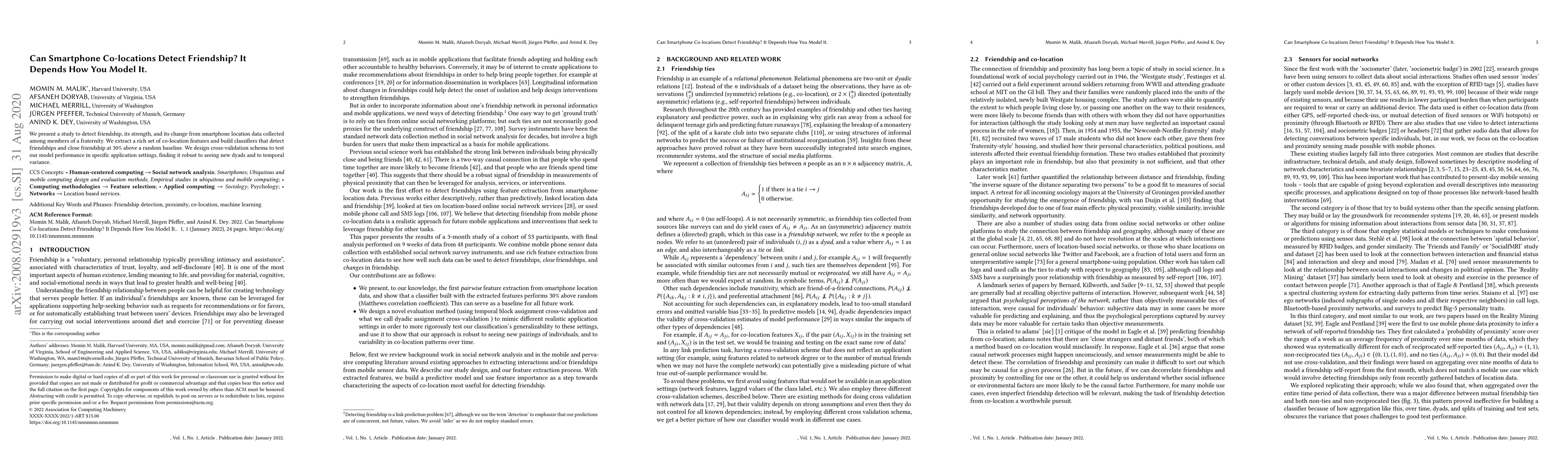 Researchers developed a method to detect friendships based on smartphone co-location data with accuracy above chance, outperforming random models.