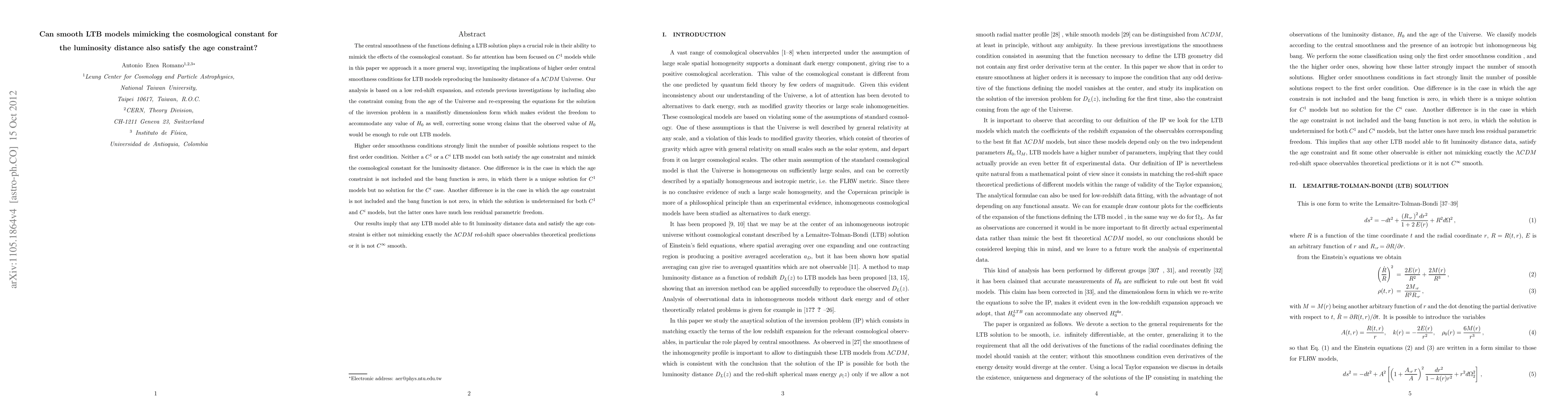 This paper investigates whether smooth LTB models, which mimic the cosmological constant's effects on luminosity distance, can also satisfy the age constraint of the Universe. Higher order smoothness conditions significantly limit viable solutions, concluding that neither $C^{1}$ nor $C^{i}$ LTB models can meet both criteria simultaneously.