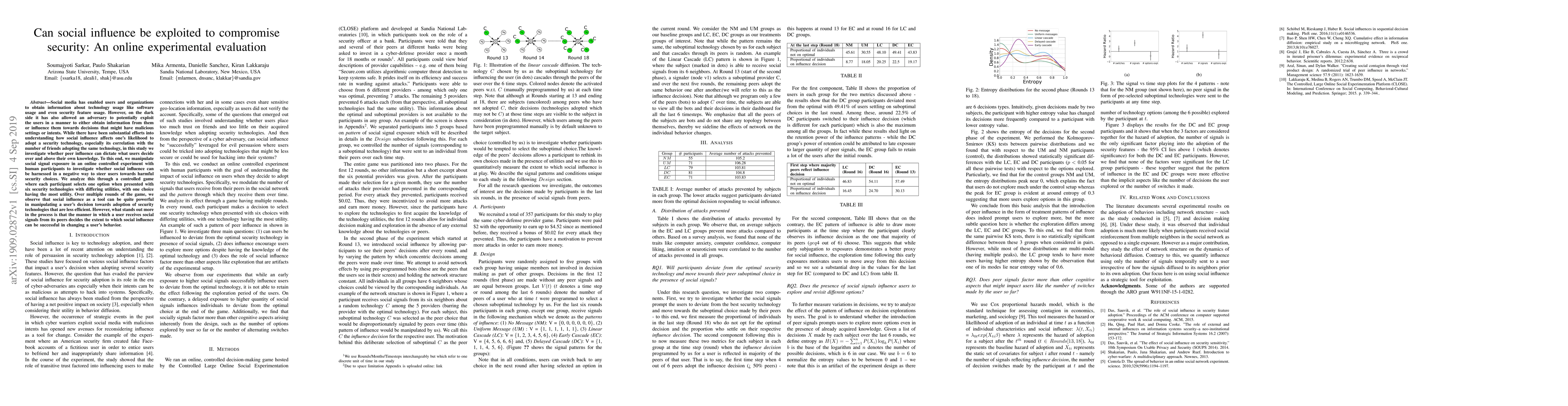 This study reveals that social influence can significantly impact users' security technology choices, often leading them to less efficient options. The research, conducted via a controlled online experiment, highlights that the way users receive social signals from peers greatly influences the effectiveness of such manipulation.