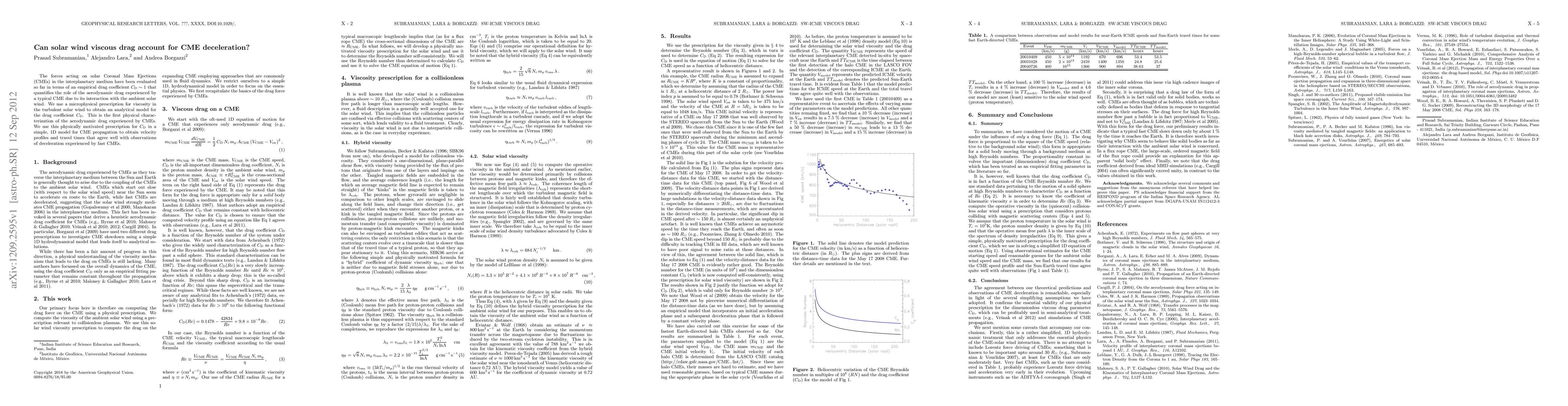 The forces acting on solar Coronal Mass Ejections (CMEs) in the interplanetary medium have been evaluated so far in terms of an empirical drag coefficient $C_{\rm D} \sim 1$ that quantifies the role of the aerodynamic drag experienced by a typical CME due to its interaction with the ambient solar wind. We use a microphysical prescription for viscosity in the turbulent solar wind to obtain an analytical model for the drag coefficient $C_{\rm D}$. This is the first physical characterization of the aerodynamic drag experienced by CMEs. We use this physically motivated prescription for $C_{\rm D}$ in a simple, 1D model for CME propagation to obtain velocity profiles and travel times that agree well with observations of deceleration experienced by fast CMEs.