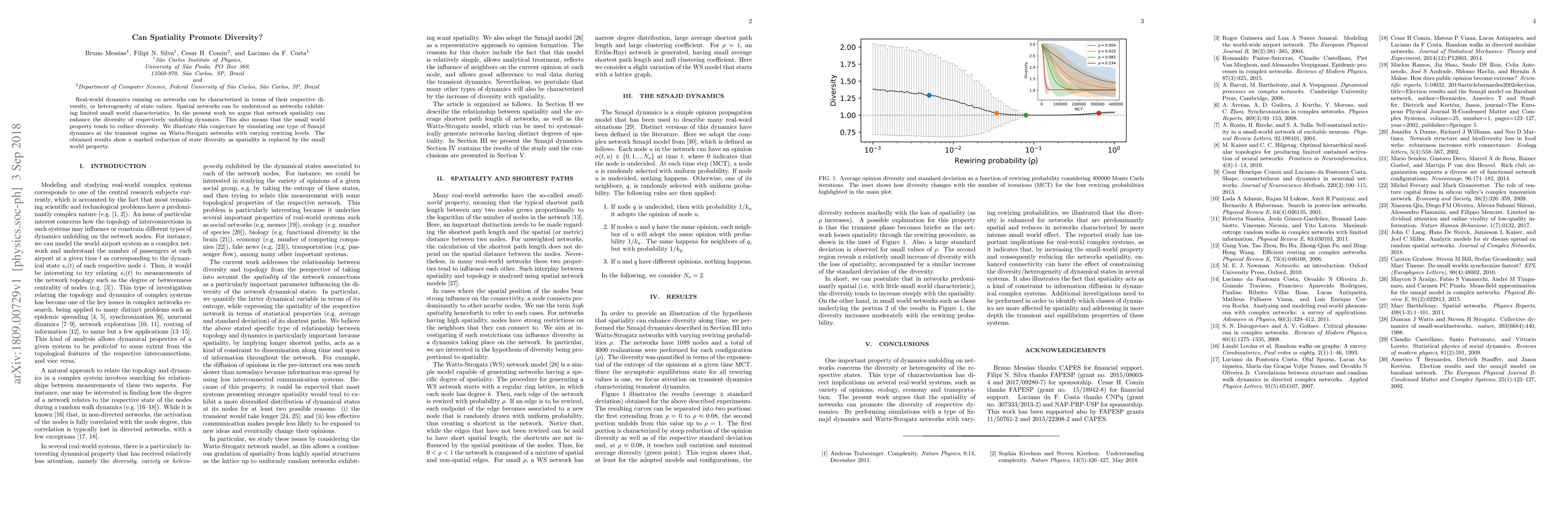 Real-world dynamics running on networks can be characterized in terms of their respective diversity, or heterogeneity of state values. Spatial networks can be understood as networks exhibiting limited small world characteristics. In the present work we argue that network spatiality can enhance the diversity of respectively unfolding dynamics. This also means that the small world property tends to reduce diversity. We illustrate this conjecture by simulating one type of Sznajd dynamics at the transient regime on Watts-Strogatz networks with varying rewiring levels. The obtained results show a marked reduction of state diversity as spatiality is replaced by the small world property.
