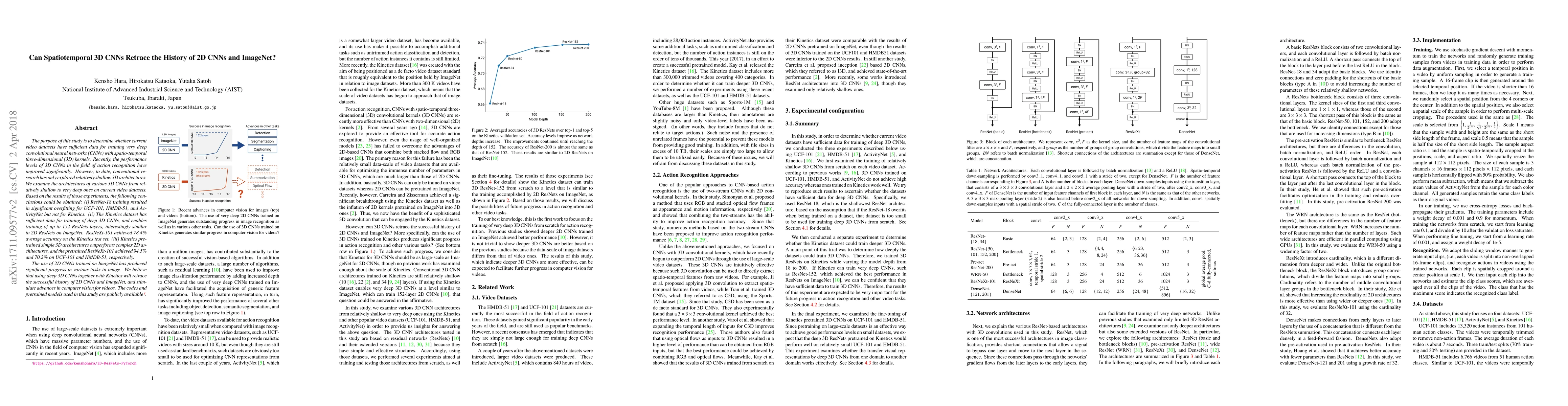The purpose of this study is to determine whether current video datasets have sufficient data for training very deep convolutional neural networks (CNNs) with spatio-temporal three-dimensional (3D) kernels. Recently, the performance levels of 3D CNNs in the field of action recognition have improved significantly. However, to date, conventional research has only explored relatively shallow 3D architectures. We examine the architectures of various 3D CNNs from relatively shallow to very deep ones on current video datasets. Based on the results of those experiments, the following conclusions could be obtained: (i) ResNet-18 training resulted in significant overfitting for UCF-101, HMDB-51, and ActivityNet but not for Kinetics. (ii) The Kinetics dataset has sufficient data for training of deep 3D CNNs, and enables training of up to 152 ResNets layers, interestingly similar to 2D ResNets on ImageNet. ResNeXt-101 achieved 78.4% average accuracy on the Kinetics test set. (iii) Kinetics pretrained simple 3D architectures outperforms complex 2D architectures, and the pretrained ResNeXt-101 achieved 94.5% and 70.2% on UCF-101 and HMDB-51, respectively. The use of 2D CNNs trained on ImageNet has produced significant progress in various tasks in image. We believe that using deep 3D CNNs together with Kinetics will retrace the successful history of 2D CNNs and ImageNet, and stimulate advances in computer vision for videos. The codes and pretrained models used in this study are publicly available. https://github.com/kenshohara/3D-ResNets-PyTorch