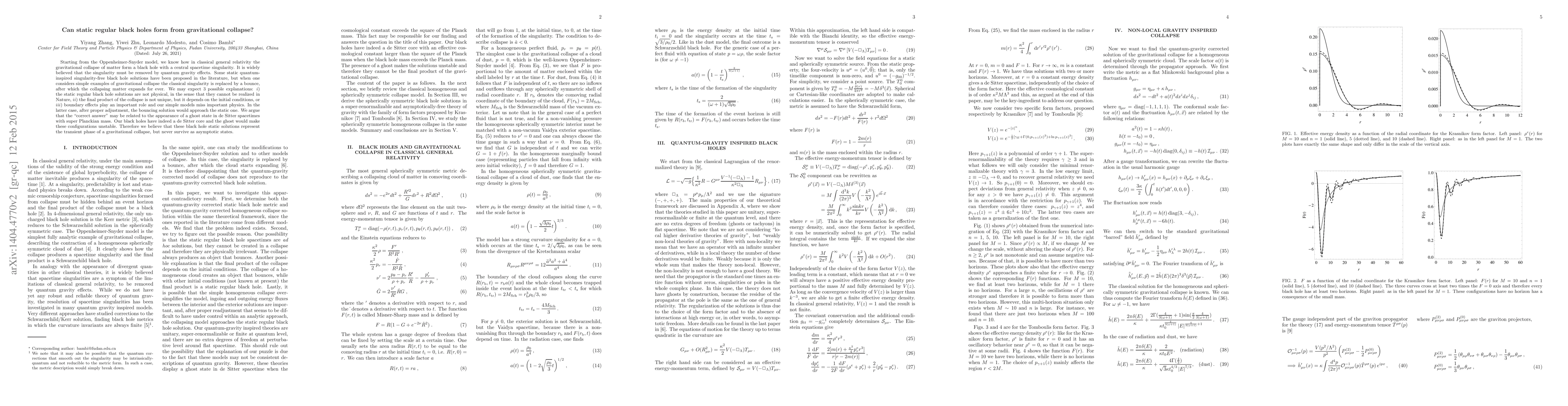 This paper investigates whether static regular black holes can form from gravitational collapse, arguing that classical singularities are replaced by bounces in collapse scenarios. The authors conclude that static regular black holes likely represent transient phases rather than stable asymptotic states due to the instability introduced by ghost states in de Sitter cores.