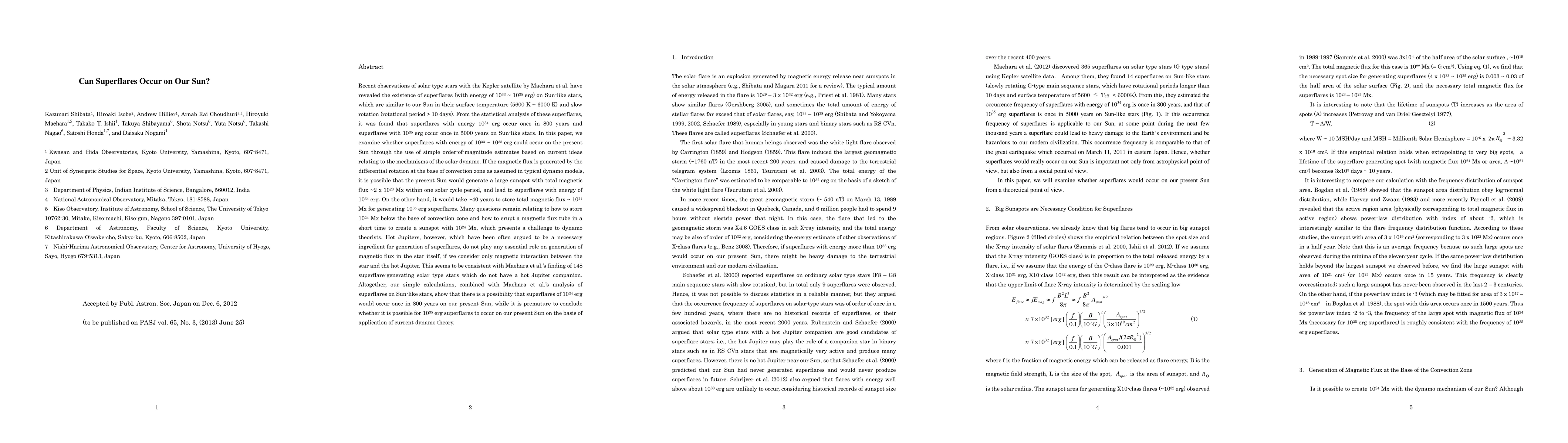 Recent solar type stars suggest superflares can occur on Sun-like stars with 10^34 erg energy once in 800 years and 10^35 erg energy once in 5000 years. This paper explores if similar superflares could occur on our present Sun using simple order-of-magnitude estimates.