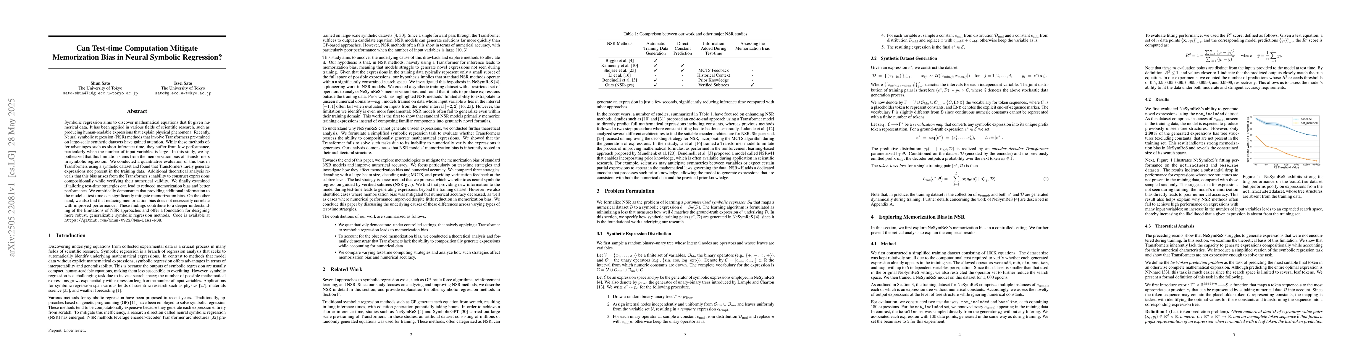 The study identifies memorization bias in Transformers for symbolic regression and proposes test-time computation strategies to mitigate this issue.