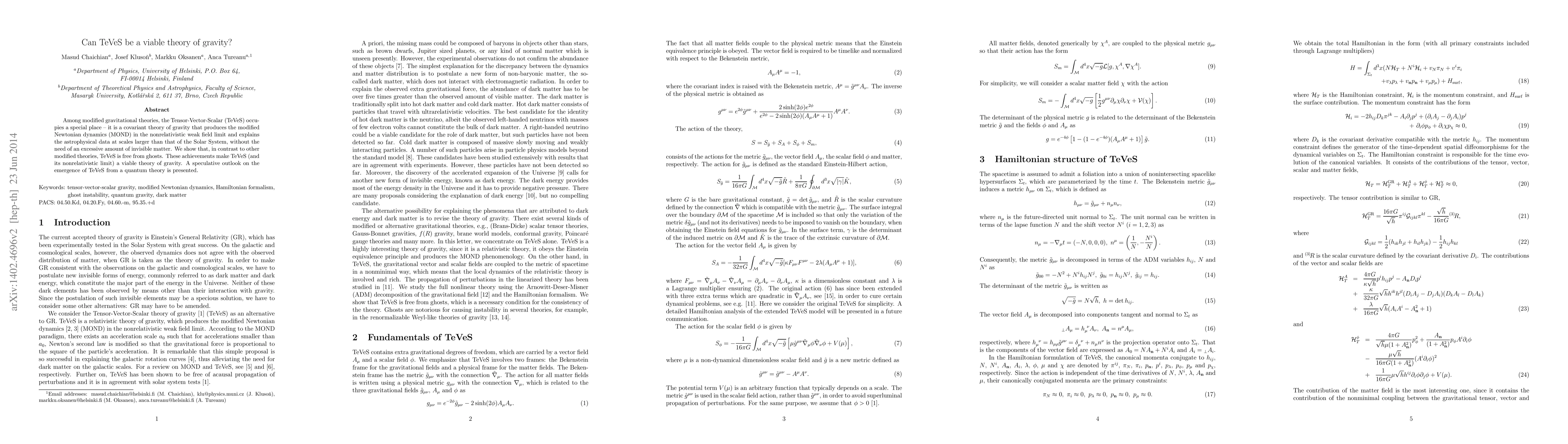 Among modified gravitational theories, the Tensor-Vector-Scalar (TeVeS) occupies a special place -- it is a covariant theory of gravity that produces the modified Newtonian dynamics (MOND) in the nonrelativistic weak field limit and explains the astrophysical data at scales larger than that of the Solar System, without the need of an excessive amount of invisible matter. We show that, in contrast to other modified theories, TeVeS is free from ghosts. These achievements make TeVeS (and its nonrelativistic limit) a viable theory of gravity. A speculative outlook on the emergence of TeVeS from a quantum theory is presented.