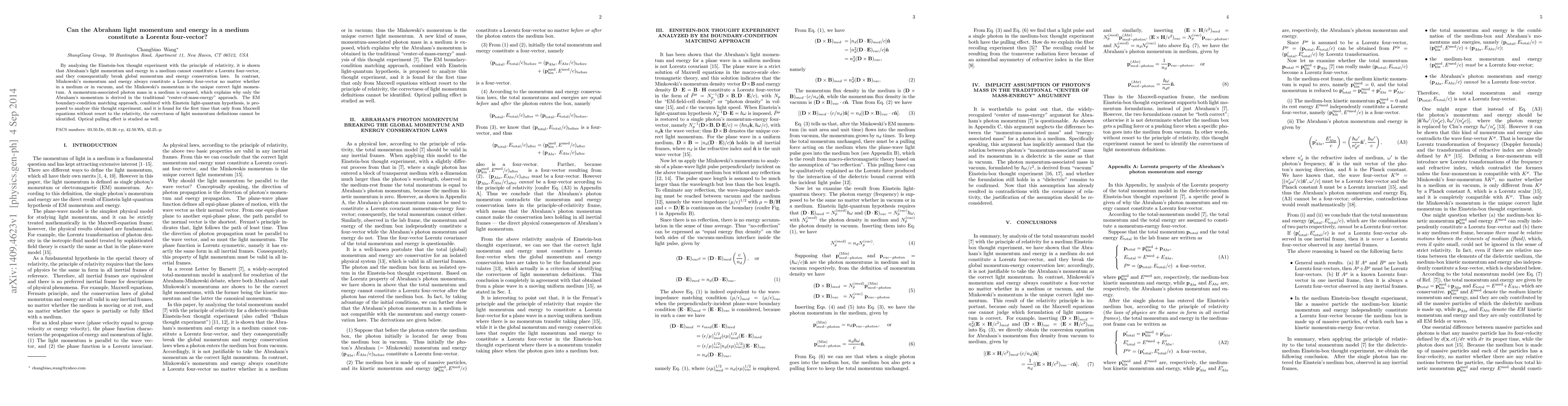 By analyzing the Einstein-box thought experiment with the principle of relativity, it is shown that Abraham's light momentum and energy in a medium cannot constitute a Lorentz four-vector, and they consequentially break global momentum and energy conservation laws. In contrast, Minkowski's momentum and energy always constitute a Lorentz four-vector no matter whether in a medium or in vacuum, and the Minkowski's momentum is the unique correct light momentum. A momentum-associated photon mass in a medium is exposed, which explains why only the Abraham's momentum is derived in the traditional "center-of-mass-energy" approach. The EM boundary-condition matching approach, combined with Einstein light-quantum hypothesis, is proposed to analyze this thought experiment, and it is found for the first time that only from Maxwell equations without resort to the relativity, the correctness of light momentum definitions cannot be identified. Optical pulling effect is studied as well.