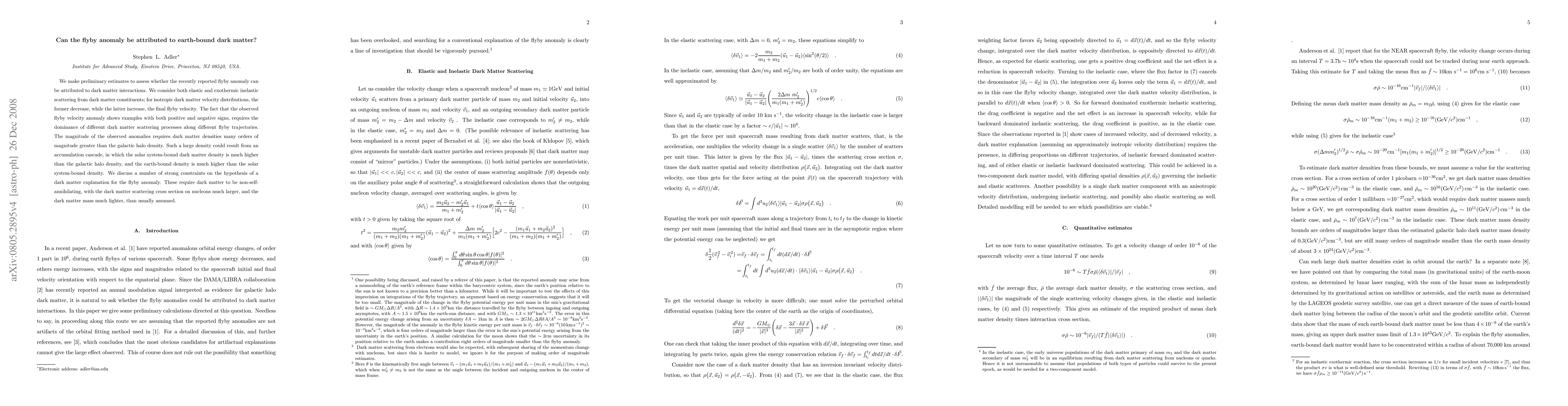 This paper explores whether the flyby anomaly could result from interactions with earth-bound dark matter, finding that large, unusual dark matter densities and specific scattering properties would be required, posing significant constraints on the hypothesis.