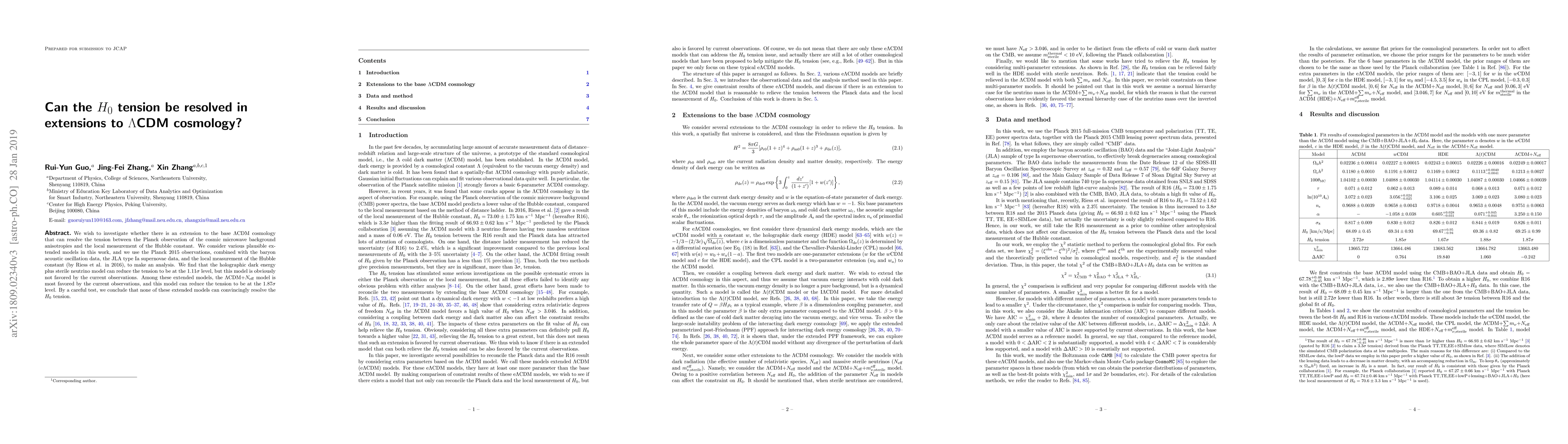 We wish to investigate whether there is an extension to the base $\Lambda$CDM cosmology that can resolve the tension between the Planck observation of the cosmic microwave background anisotropies and the local measurement of the Hubble constant. We consider various plausible extended models in this work, and we use the Planck 2015 observation, combined with the baryon acoustic oscillation data, the JLA type Ia supernovae data, and the local measurement of the Hubble constant (by Riess et al. in 2016), to make an analysis. We find that the holographic dark energy plus sterile neutrino model can reduce the tension to be at the 1.11$\sigma$ level, but this model is obviously not favored by the current observations. Among these extended models, the $\Lambda$CDM+$N_{\rm eff}$ model is most favored by the current observations, and this model can reduce the tension to be at the 1.87$\sigma$ level. By a careful test, we conclude that none of these extended models can convincingly resolve the $H_0$ tension.