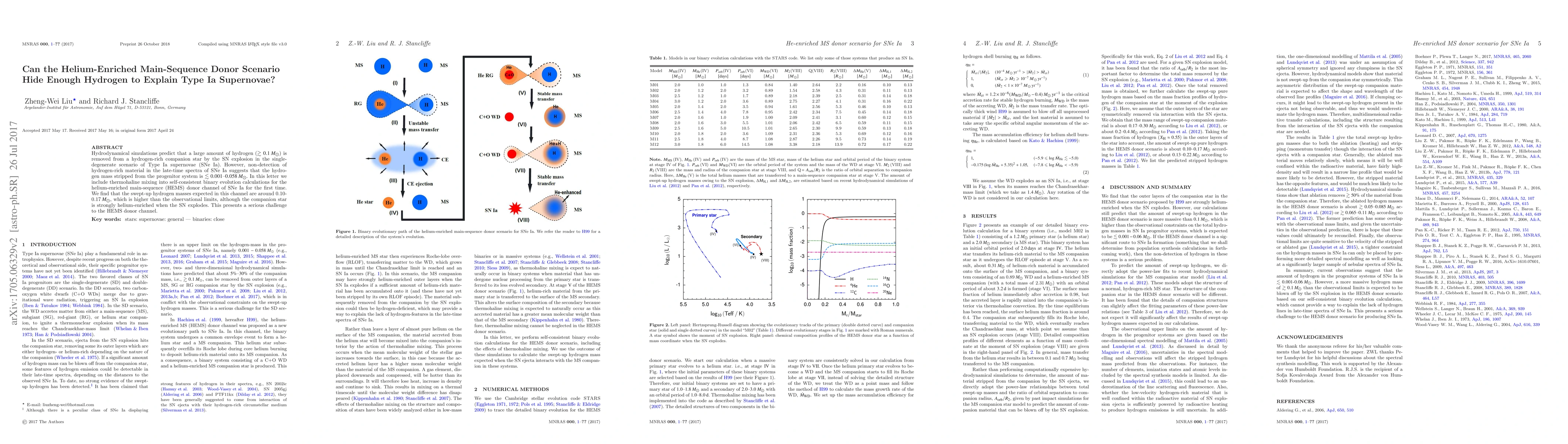 This study investigates whether the helium-enriched main-sequence donor scenario can hide enough stripped hydrogen to explain Type Ia supernovae, finding that hydrodynamical simulations predict higher hydrogen masses than observed, posing a challenge for this scenario.
